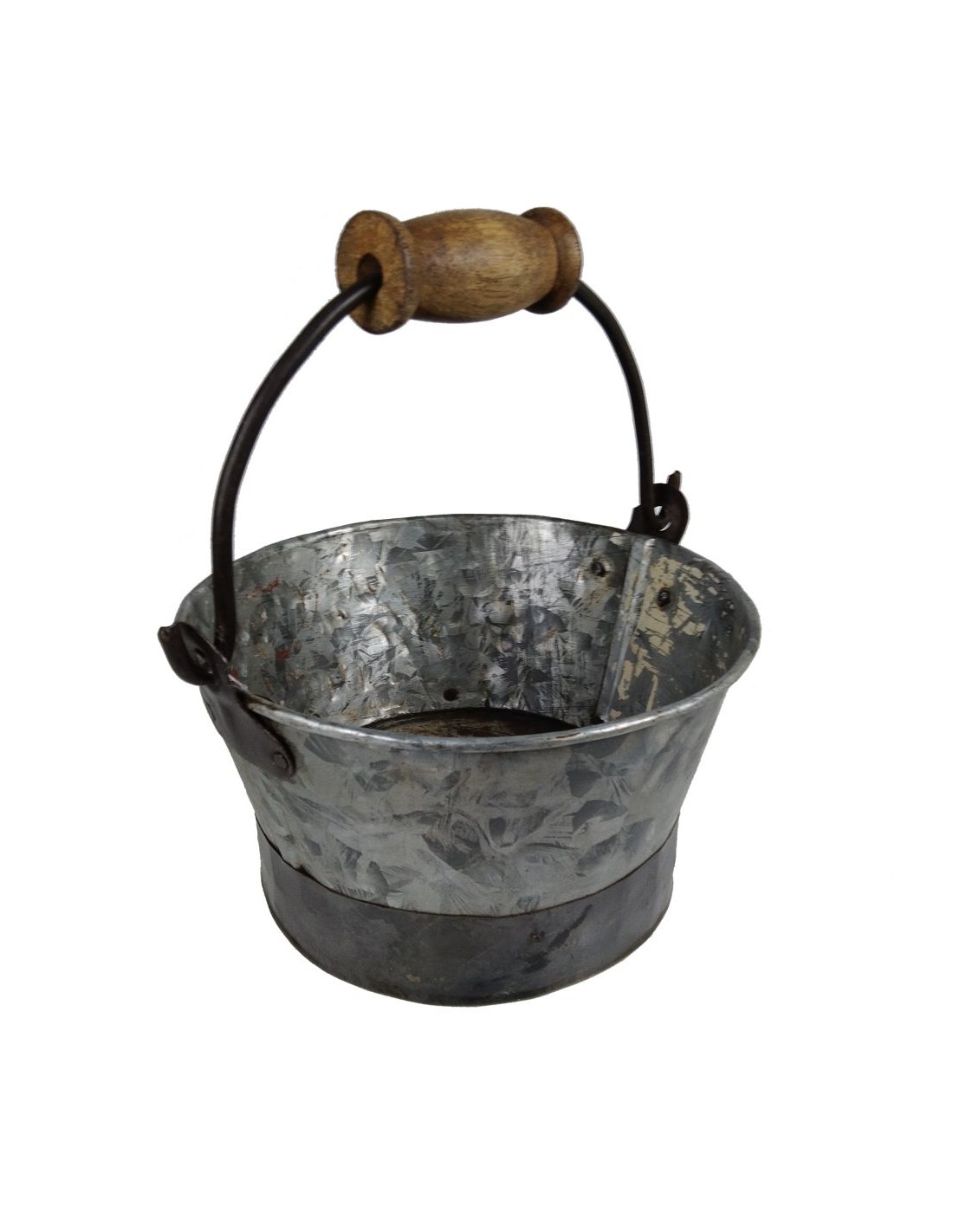 Seau en métal avec anse en bois, récipient de style vintage et rustique, idéal pour les décorations. Dimensions 14x30 Ø cm.