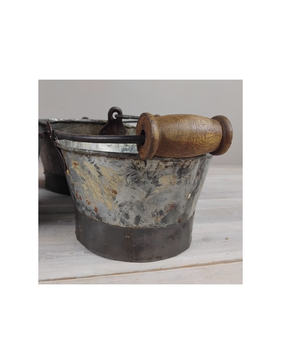 Seau en métal antique avec poignée en bois – Un trésor du passé.