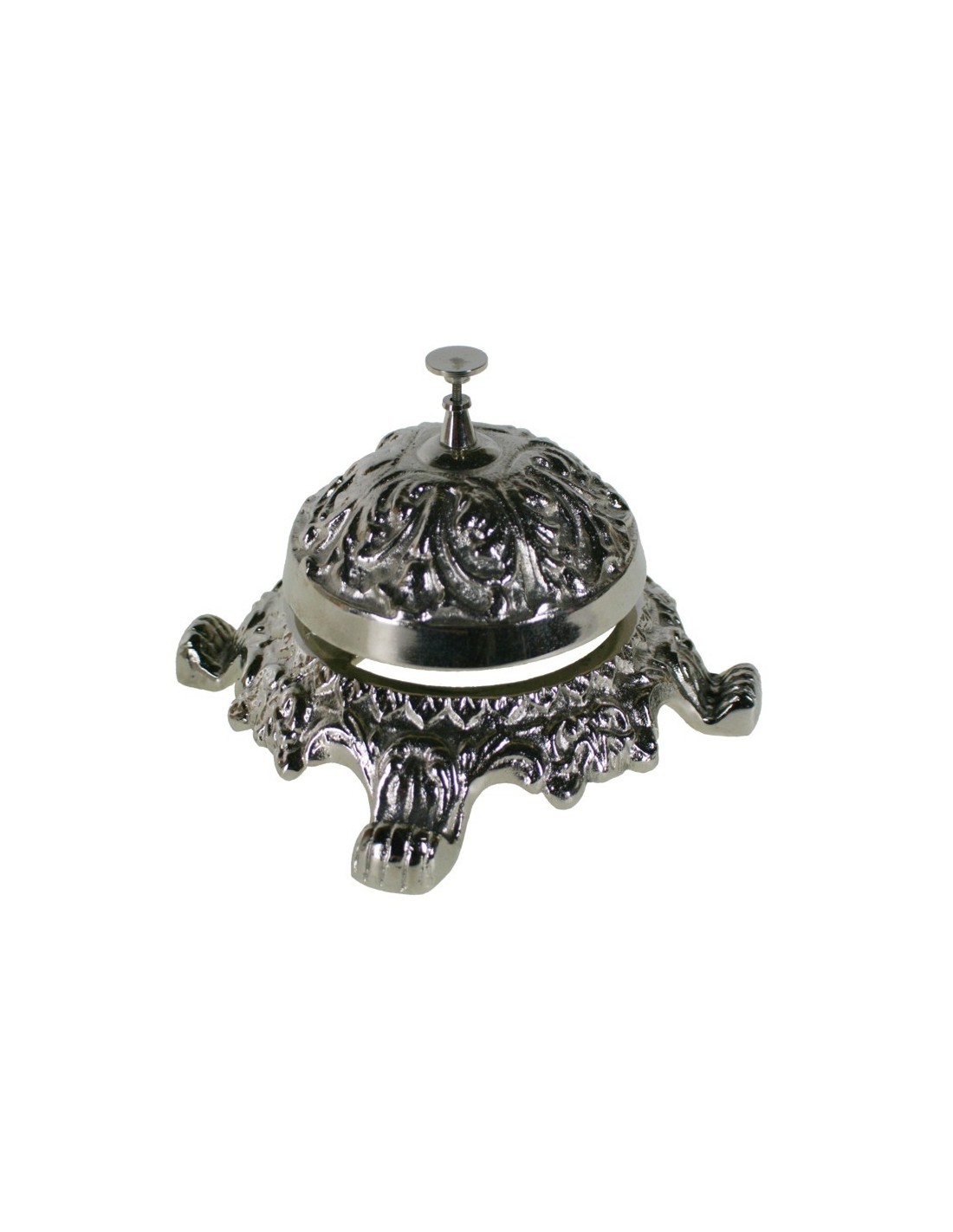 Grande cloche de réception en métal poli. Avec son design de table classique, elle est idéale pour la décoration ou comme cadeau original.