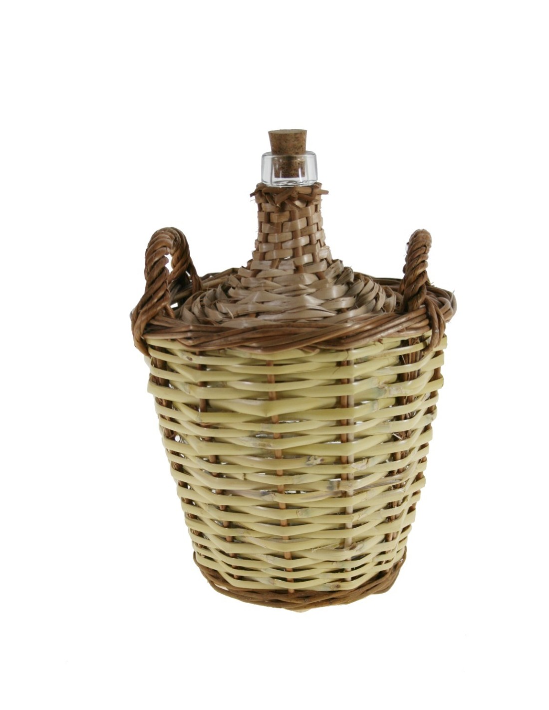 Bouteille ou Damajuana, verre d'une contenance de 2l. doublé de canne. Pour les amateurs de vins ou de liqueurs artisanales et aussi pour les achats en gros. Un retour dans le passé et bien sûr très respectueux de l'environnement. Fabrication artisanale nationale.