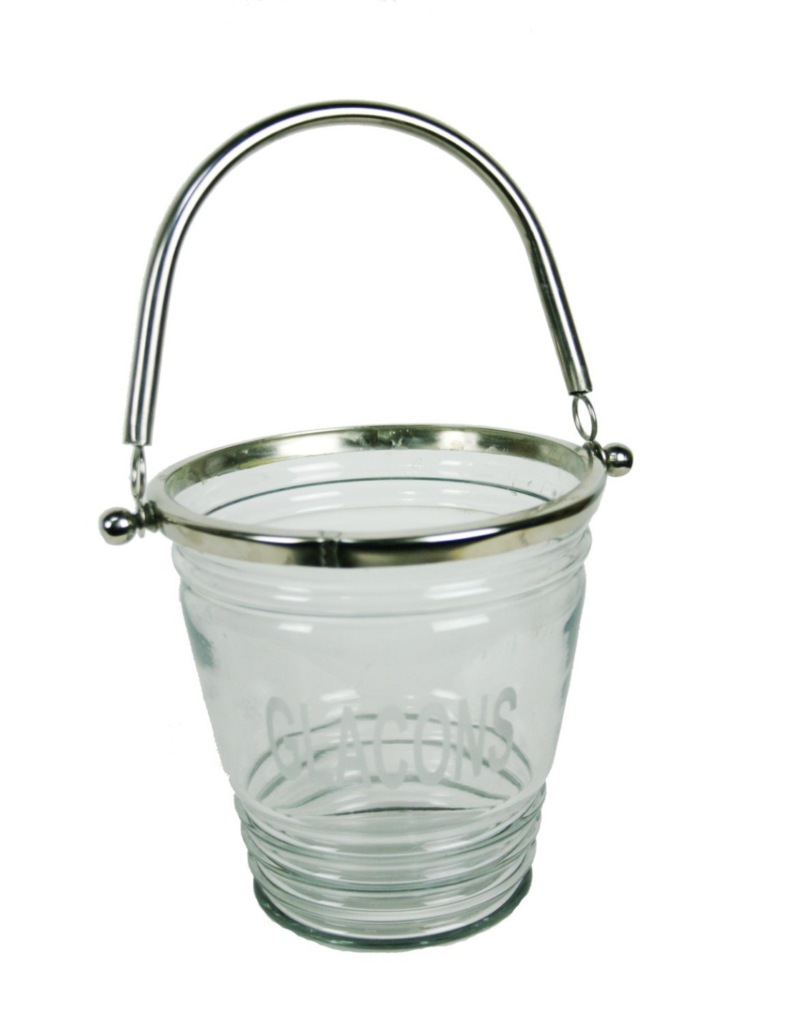 Seau à glace en verre et métal avec anse. Vaisselle. Idéal pour présenter des glaçons sur votre table pour vos invités les jours d'été.