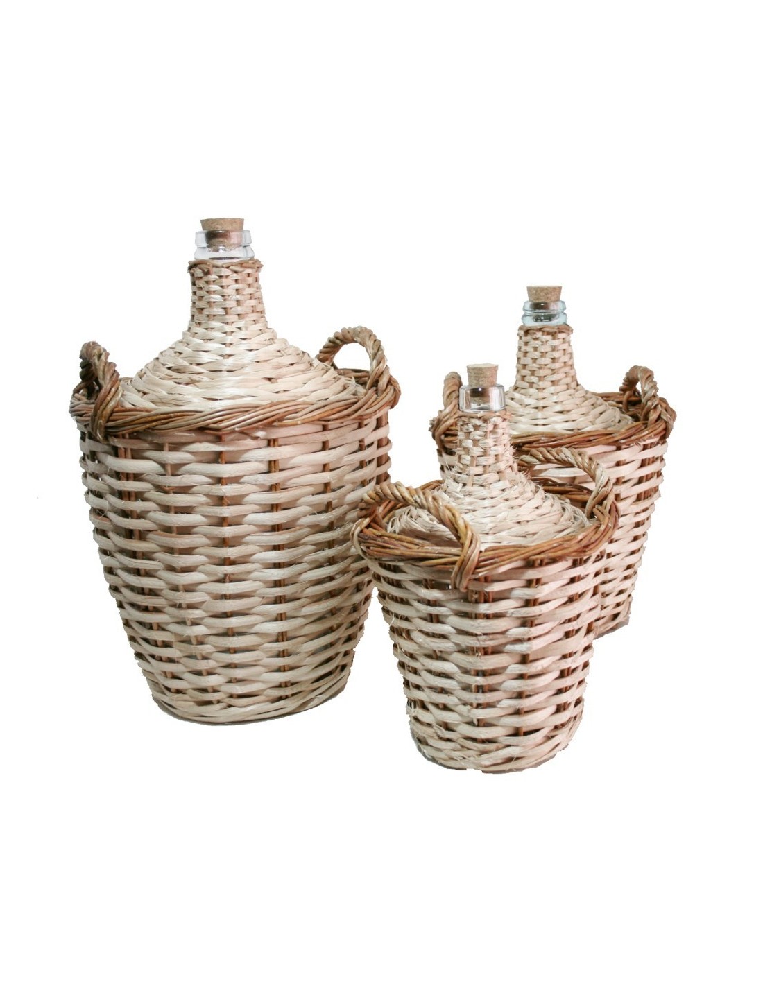 Bouteille ou Damajuana, verre d'une capacité de 4l. doublé de canne. Pour les amateurs de vins ou de liqueurs artisanales et aussi pour les achats en gros. Un retour dans le passé et bien sûr très respectueux de l'environnement. Fabrication artisanale nationale.