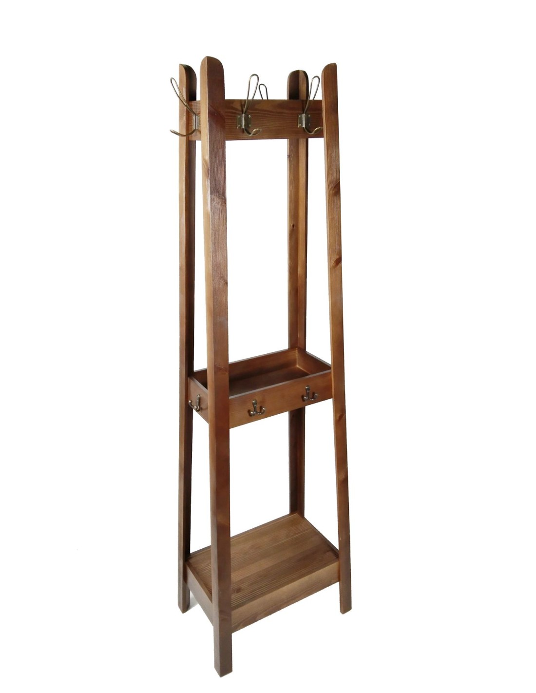 Grand porte-manteau sur pied avec 6 crochets en bois massif avec étagères, décoration de maison.Mesures:180x57x36 cm.