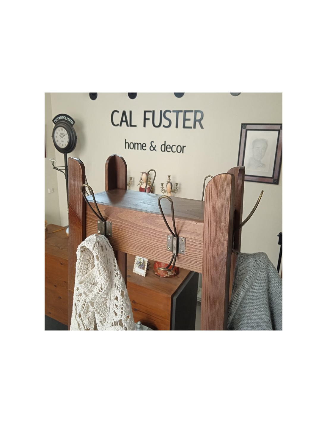 Ce charmant porte-manteau sur pied est fabriqué en bois massif de couleur noyer, apportant un style rustique et chaleureux à votre intérieur. Avec 6 patères robustes et des crochets pour sacs supplémentaires, ce porte-manteau est la solution parfaite pour garder votre entrée organisée et élégante. Ses étagères intégrées, son plateau de poche et son espace chaussures offrent un espace pratique pour vos affaires quotidiennes. Fabriqué à la main par Cal Fuster, chaque détail de ce porte-manteau reflète la qualité et le dévouement, ce qui en fait une pièce essentielle pour toute maison qui valorise l'artisanat et le design.