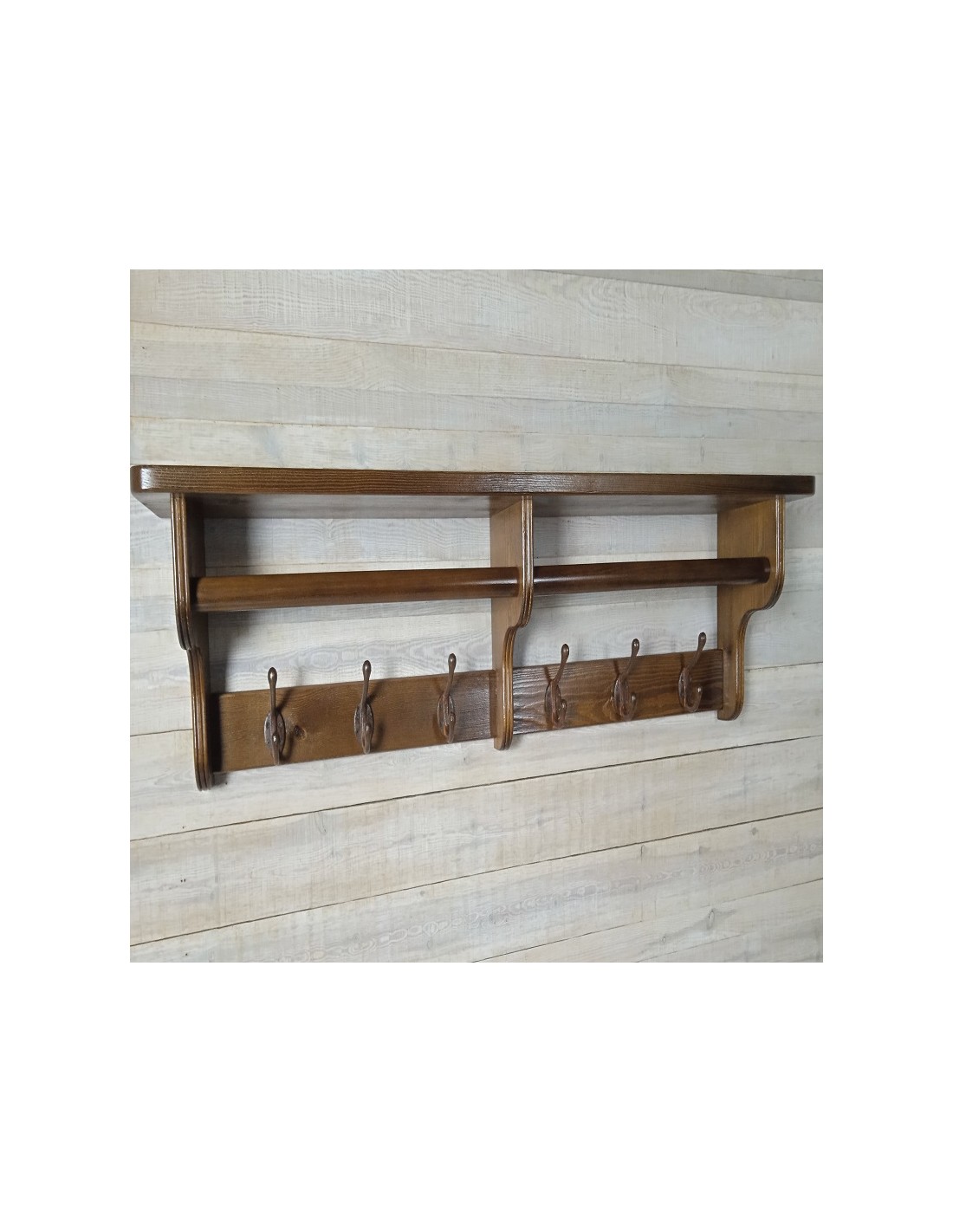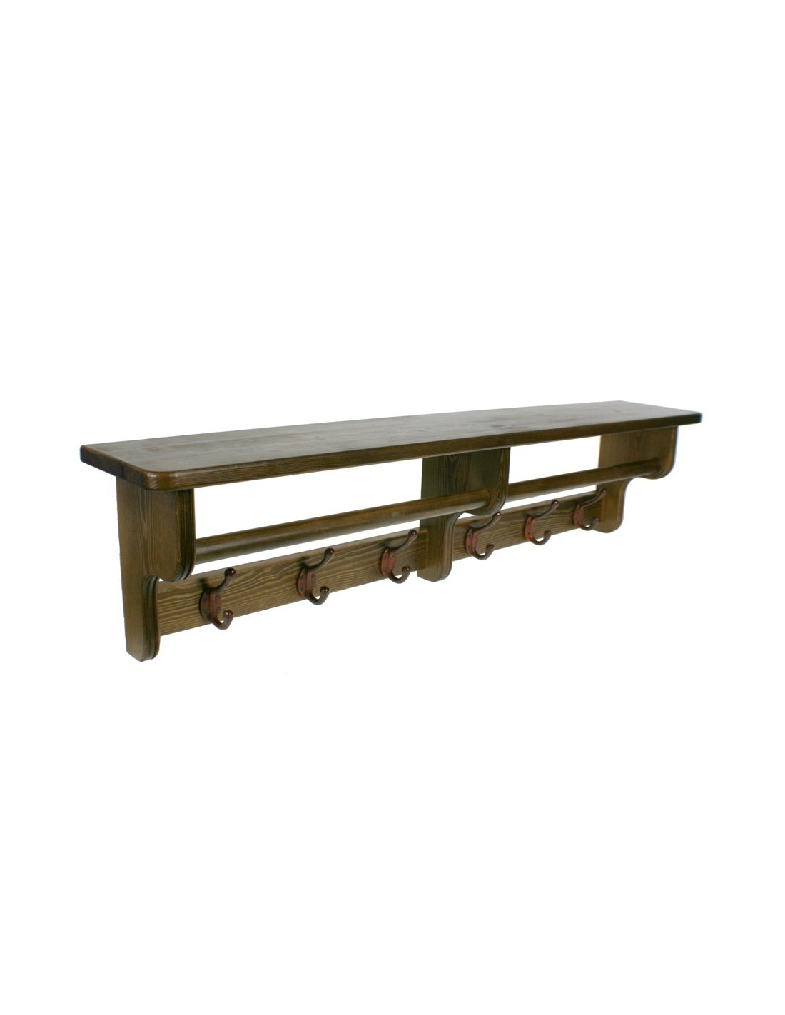 Porte-manteau avec chapiteau mural six crochets couleur bois massif robre vintage home. Mesures: 28x117x20 cm.