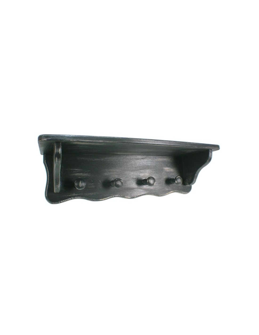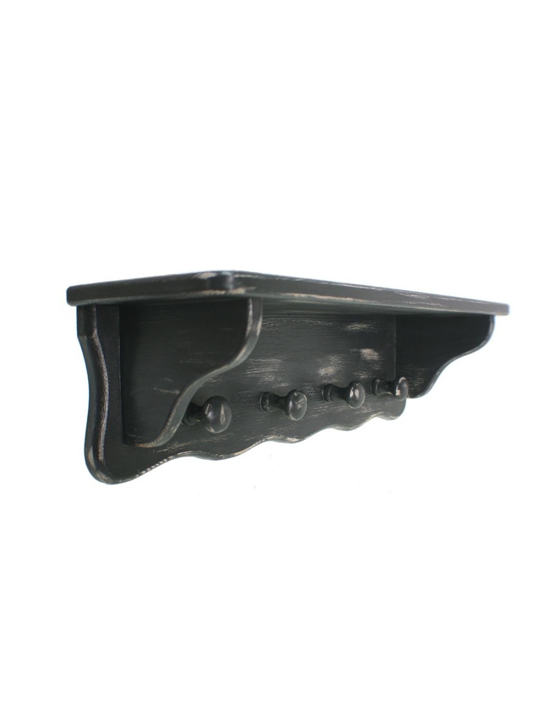 Support de suspension avec chapeau avec quatre cintres pour accrocher le mur. Structure en bois de style rustique vieilli patiné noir. Les portemanteaux sont idéaux pour gagner de la place et en même temps pouvoir décorer votre entrée ou la pièce d'une pièce.