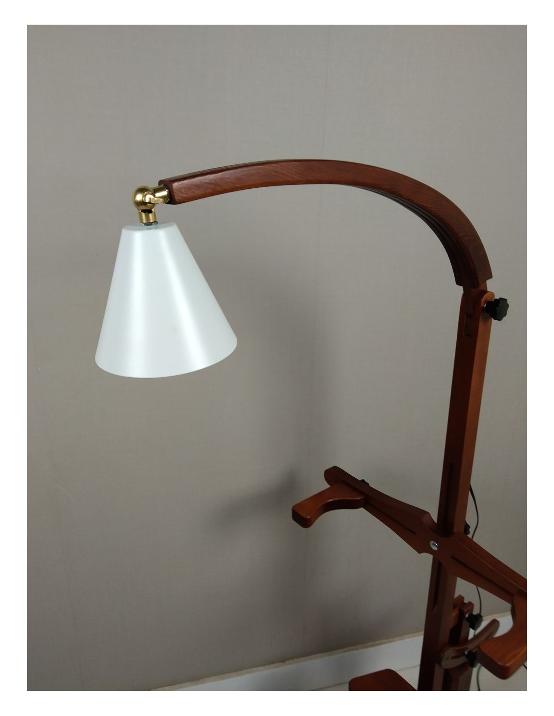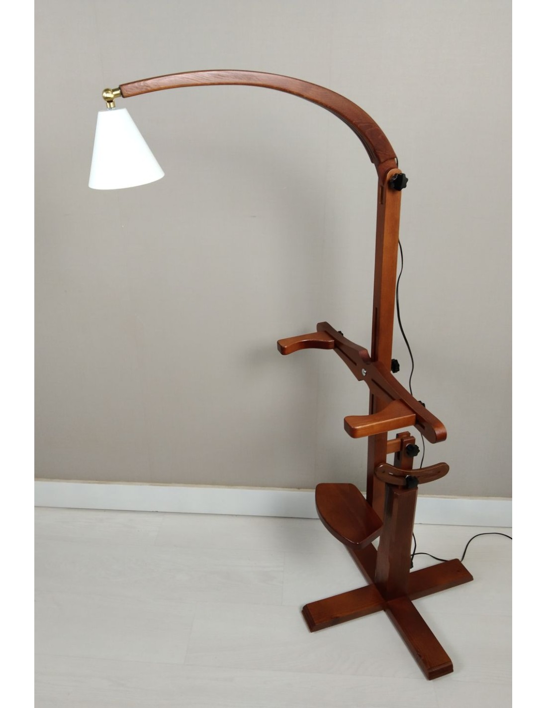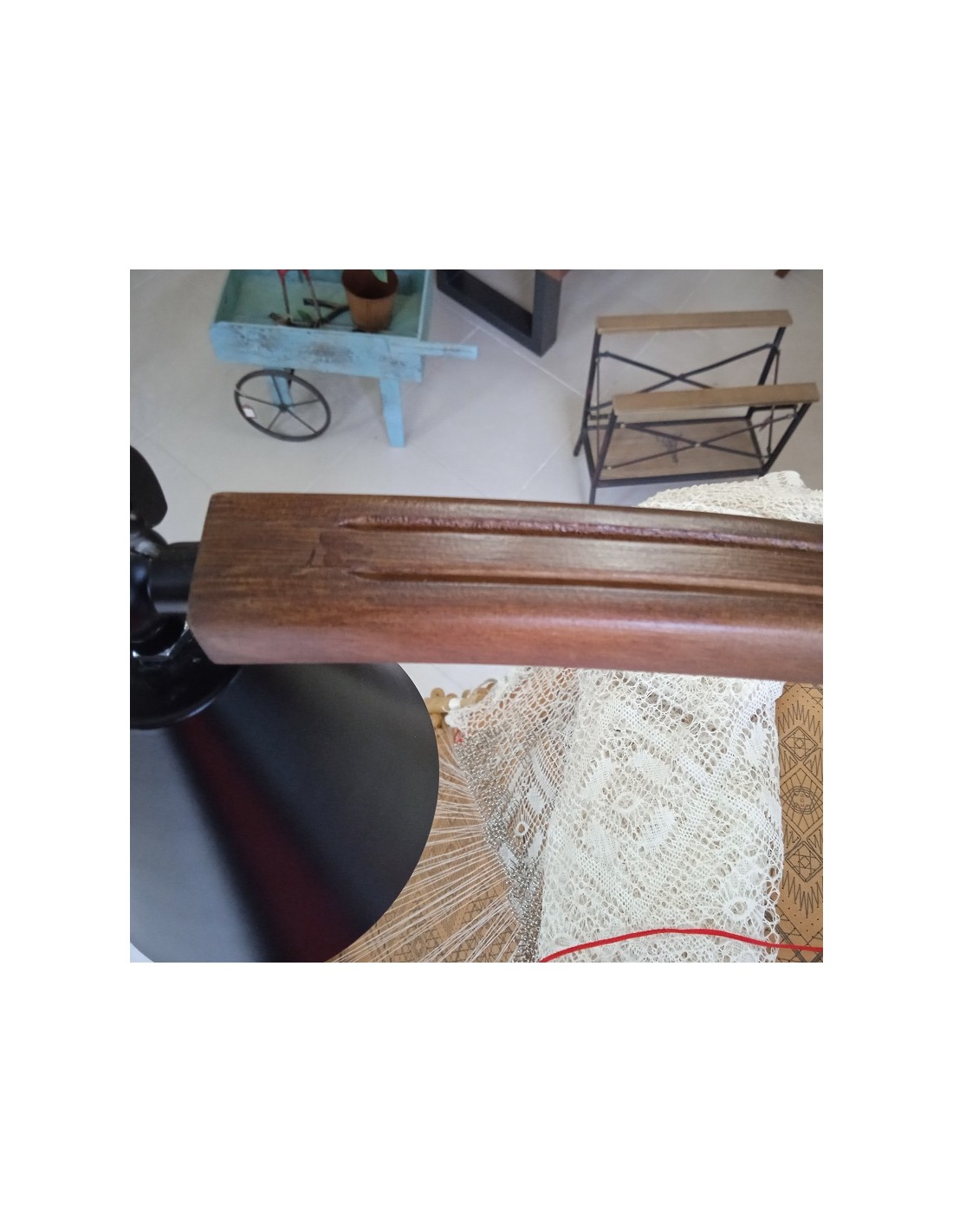 Tréteau en bois massif verni brun massif avec une structure solide, entièrement réglable pour s'adapter à la position de travail souhaitée. Son système de serrage vous permet de mettre tout type de coussin ou de coussin et de le manipuler à votre guise, en admettant des oreillers jusqu'à 40cm. environ. large. Un support de lampe orientable est également incorporé à votre goût, pour réaliser le travail avec une plus grande visibilité. C'est un accessoire indispensable pour toutes les dentellières qui souhaitent travailler confortablement et effectuer des travaux de dentelle aux fuseaux. Il est fabriqué à la main, de production limitée et est un produit national. Mesures.: 110x50x50 cm.