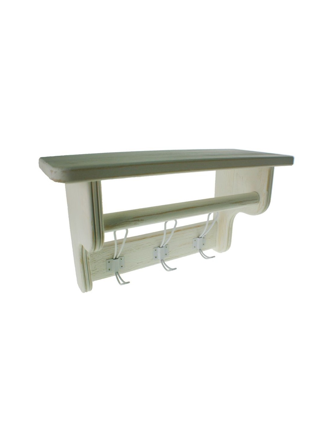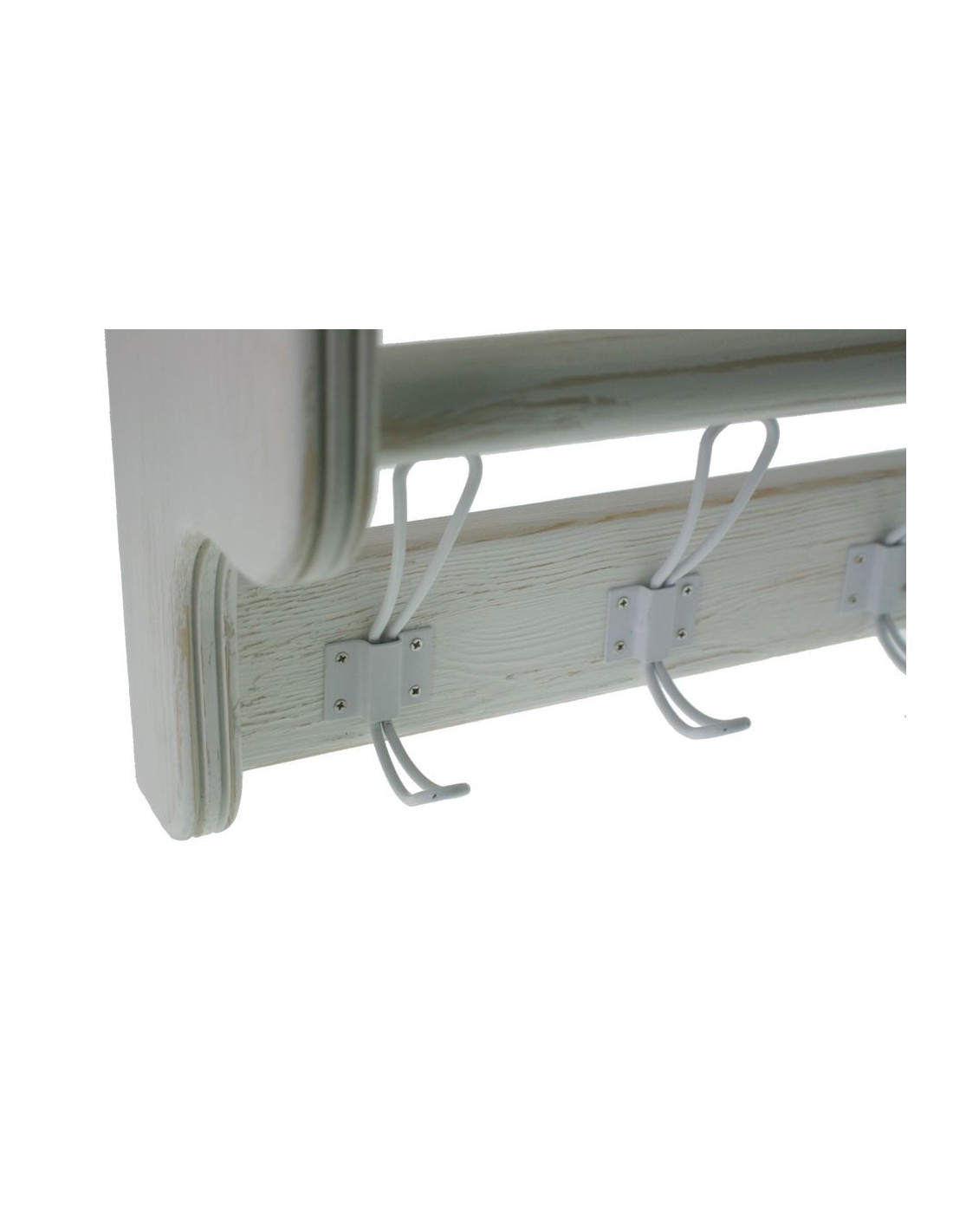 Cintre avec chapelier mural trois crochets en bois massif blanc maison vintage. Mesures: 28x49x20 cm.