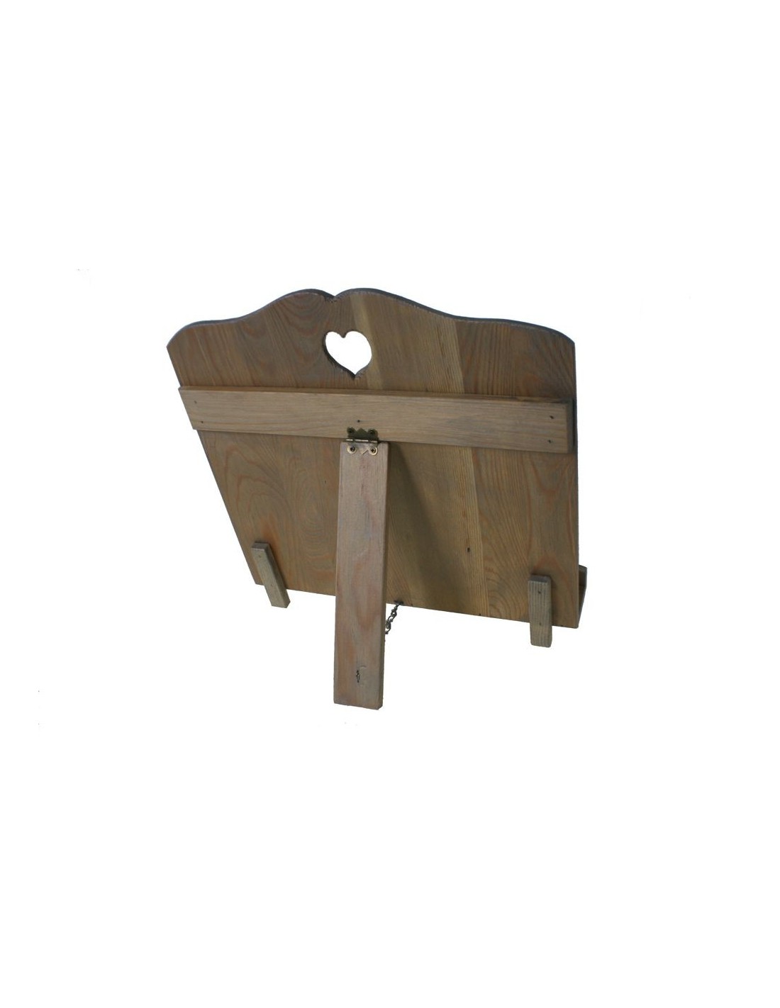 Pupitre en bois pliant vieilli avec détail de coeur de style vintage. Une pièce très utile dans votre cuisine et pour les amateurs de livres. Une pièce très originale faite à la main et typique de CAL FUSTER