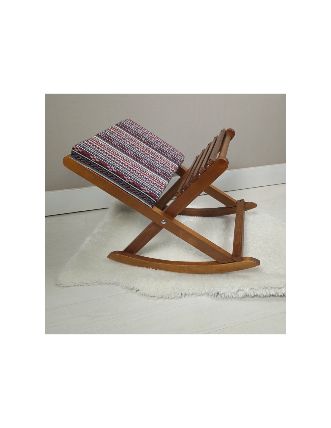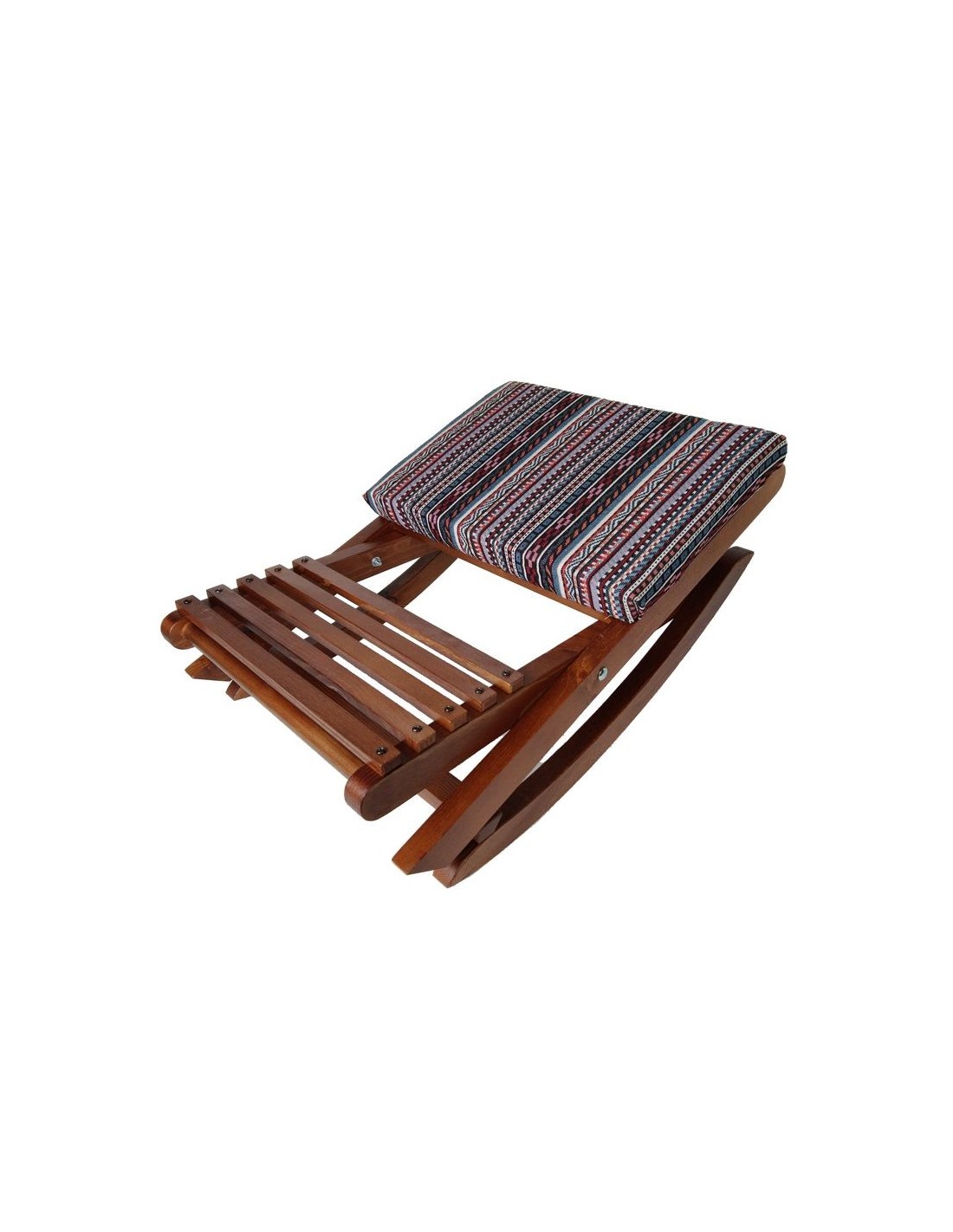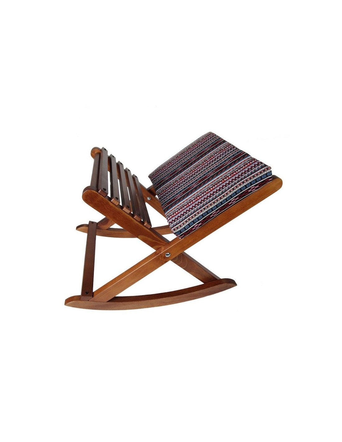 Pouf pliant en bois massif à large piètement, couleur noisette et capitonnage ethnique, meuble d'appoint.Dimensions: 39x58x37cm.
