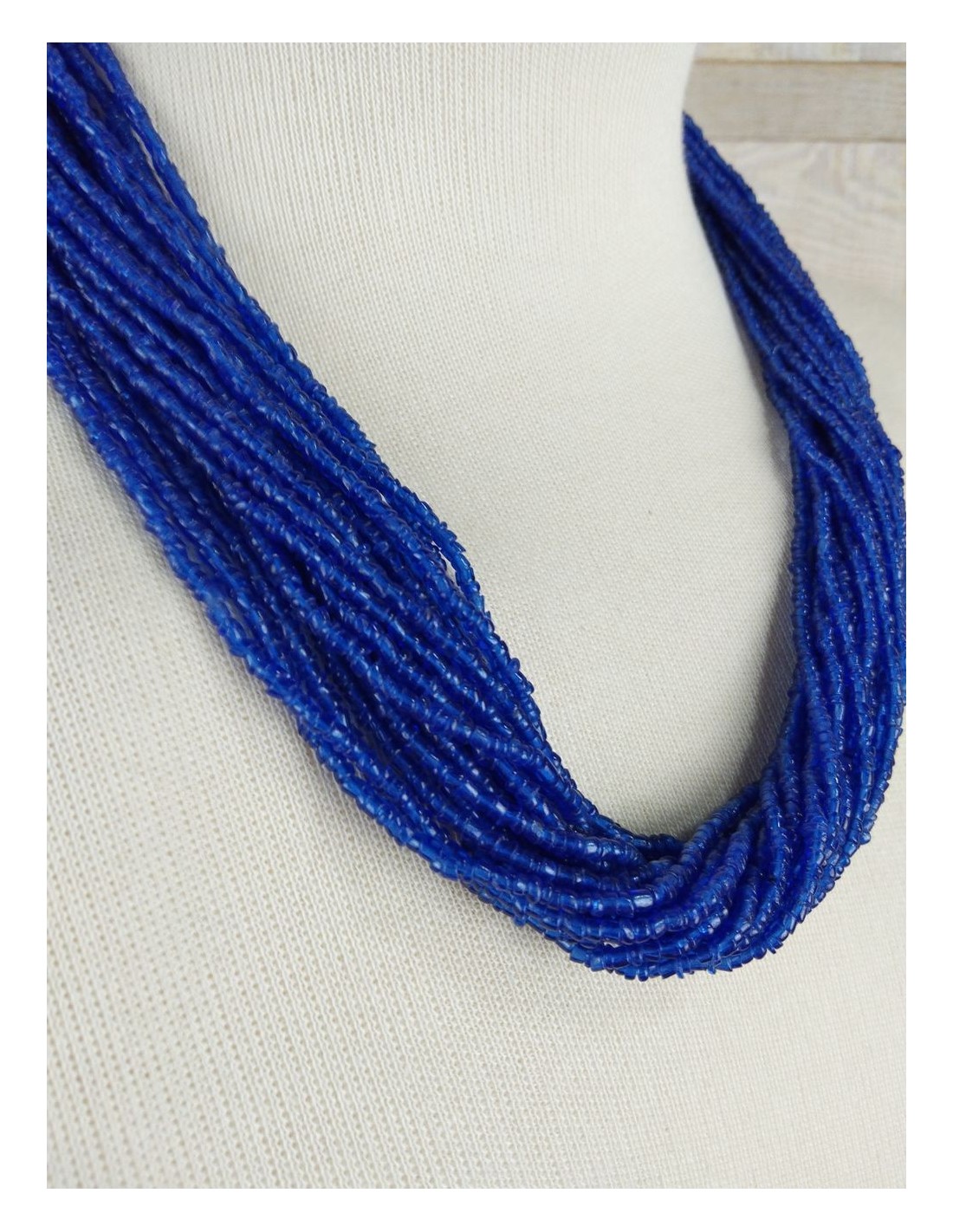 Collier indien fait à la main pour femme fermeture avec pièce bleue électrique originale. Mesures: 52 cm.