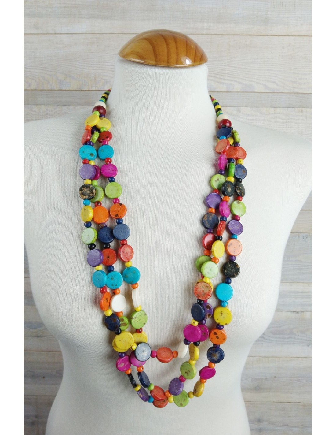 Collier de perles en porcelaine pour femme collier de perles colorées de style bohème. Mesures : 85 cm.