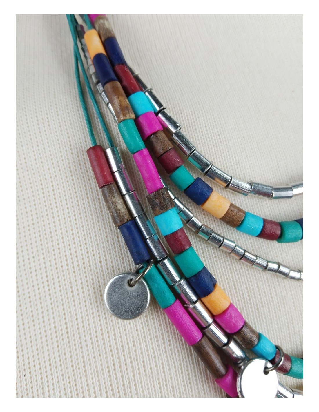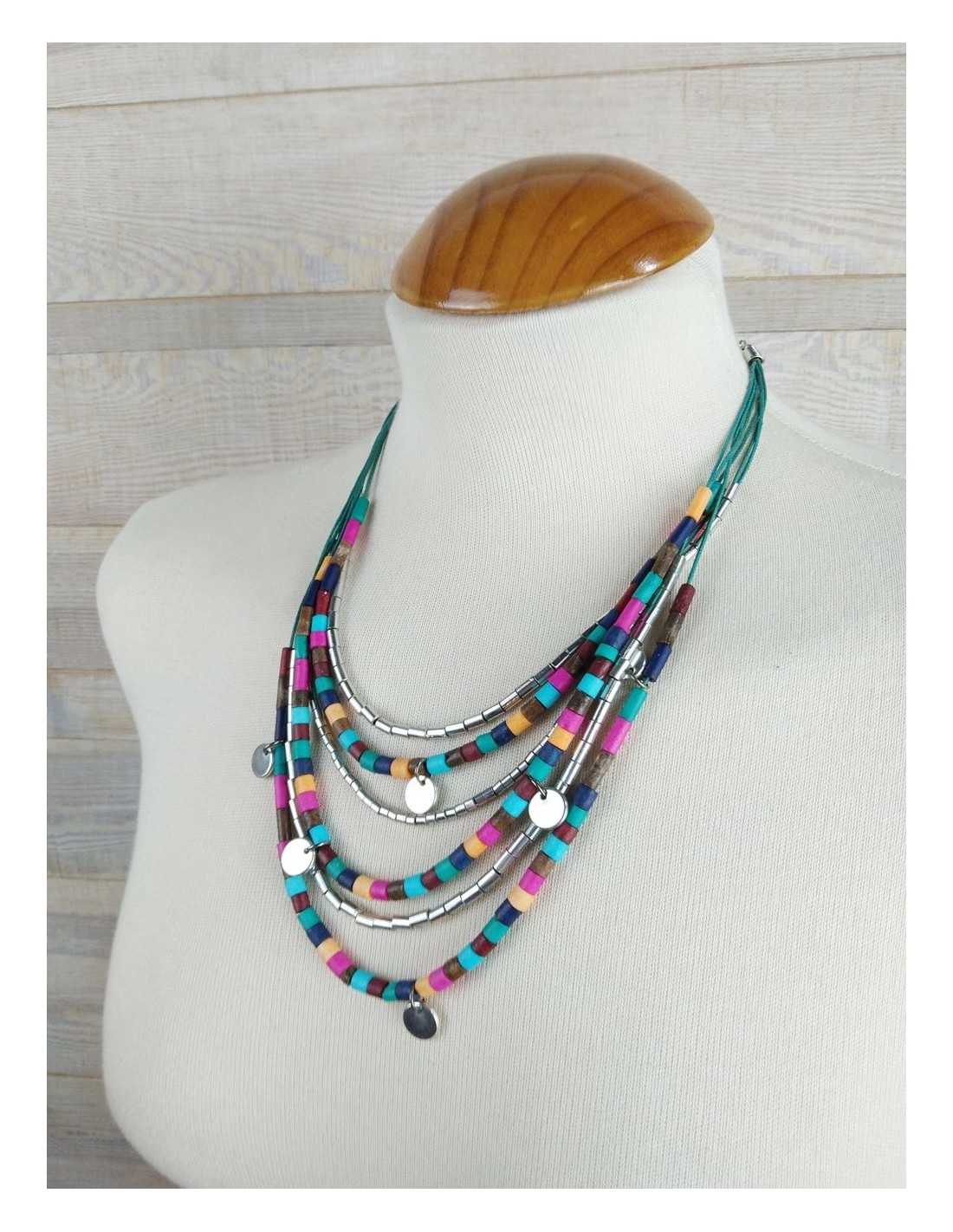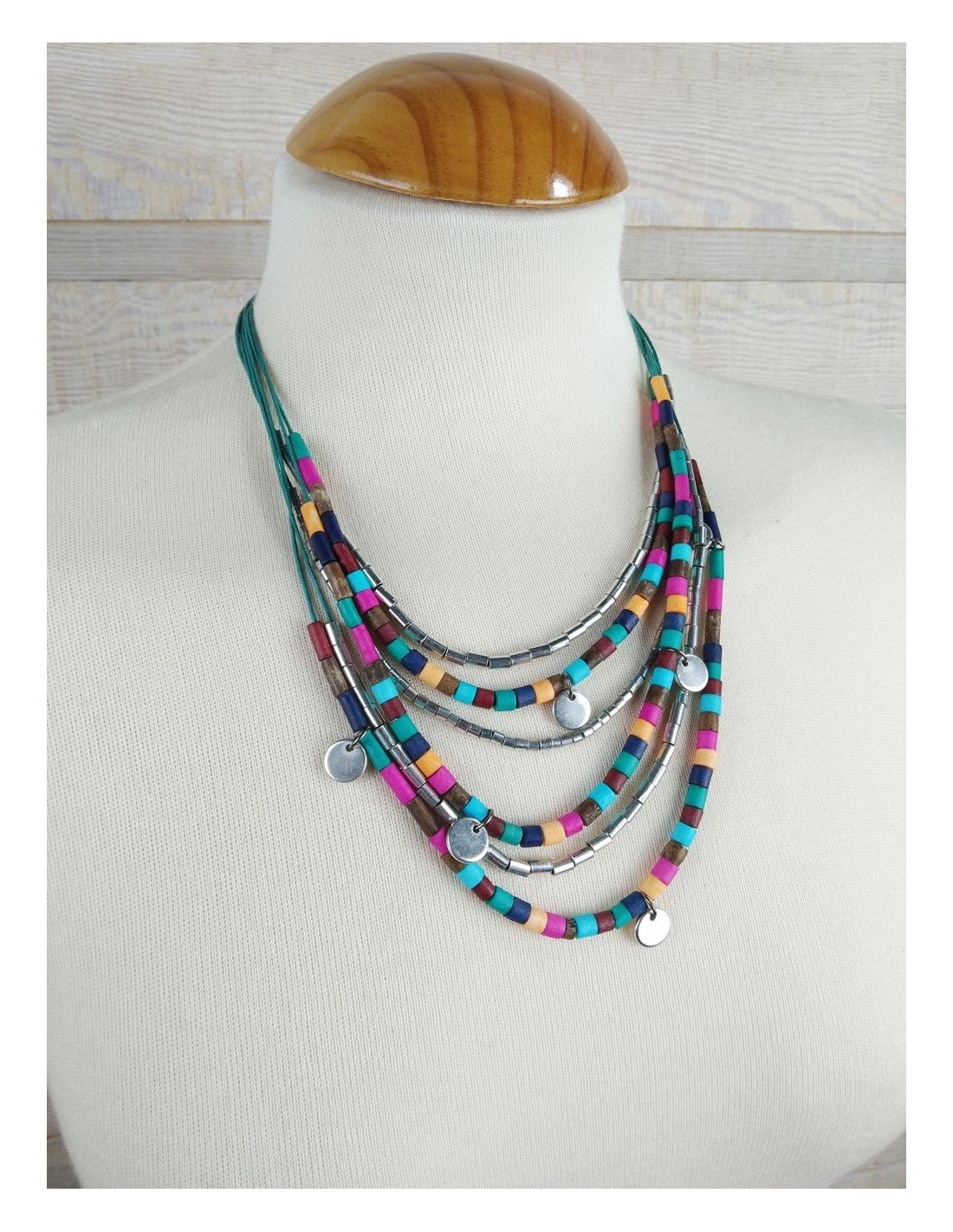 Tour de cou perlé pour femme, collier bohème décoratif avec perles multicolores. Mesures : 40 cm.