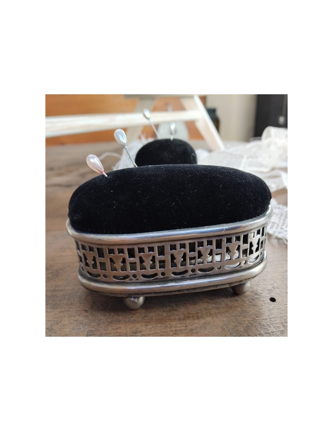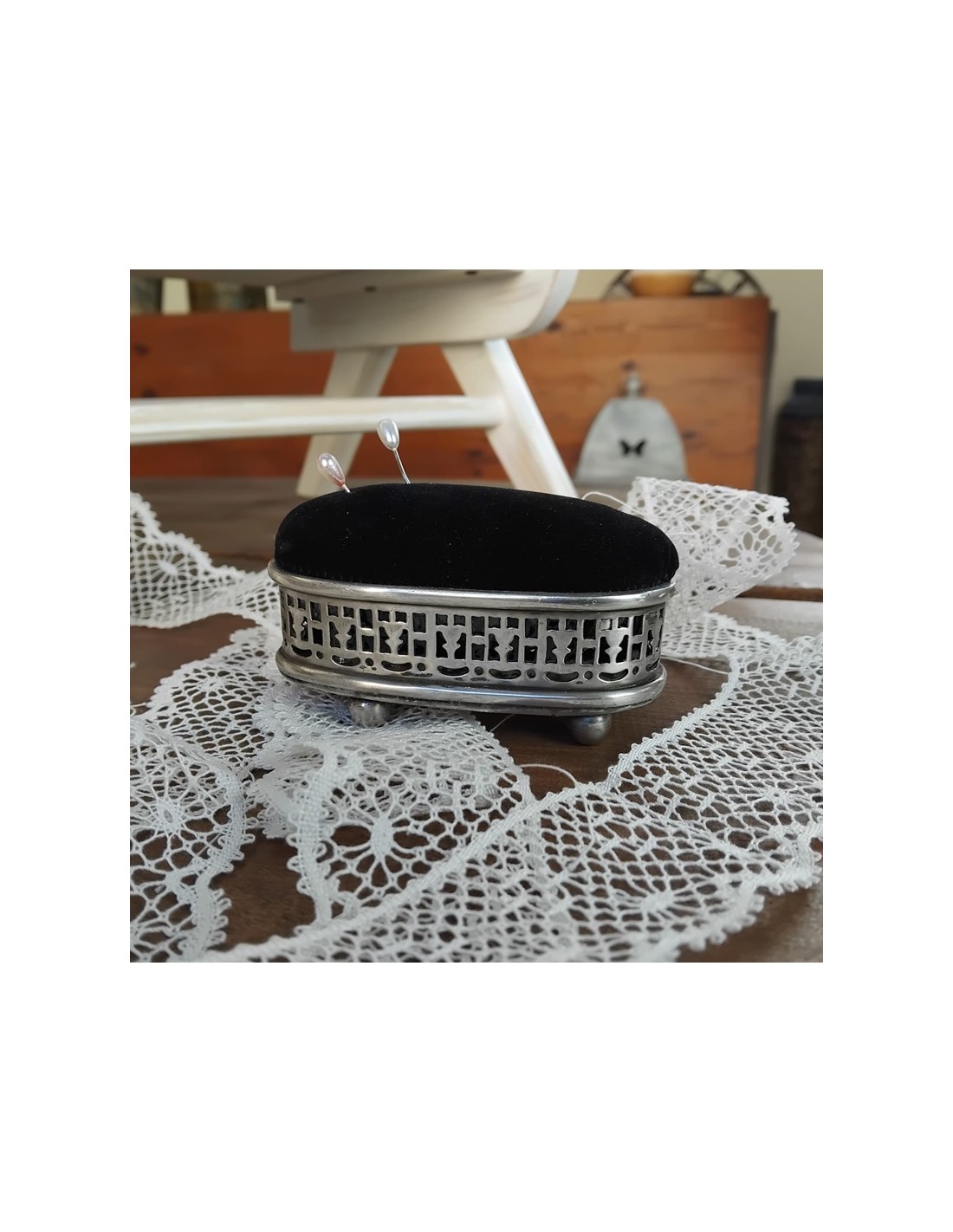 Coussin à épingles vintage avec base en métal – Élégance et commodité pour votre couture