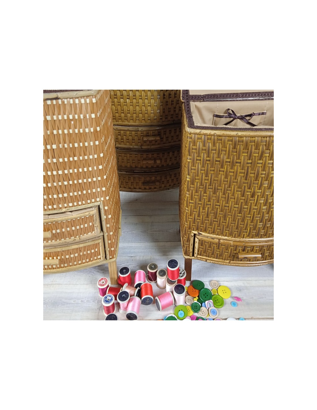 Grande boîte à couture en osier couleur miel avec deux tiroirs inférieurs de grande capacité.Dimensions:49x32x26 cm.