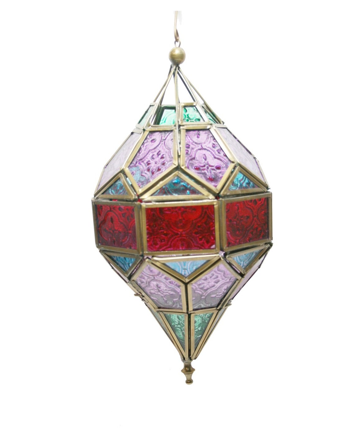 Lanterne à suspendre en verre multicolore et métal. Idéal pour les entrées de maison et de jardin de style vintage. Très original et décoratif pour l'entrée de votre maison et lorsque vous aurez des visiteurs ils seront surpris par son originalité.