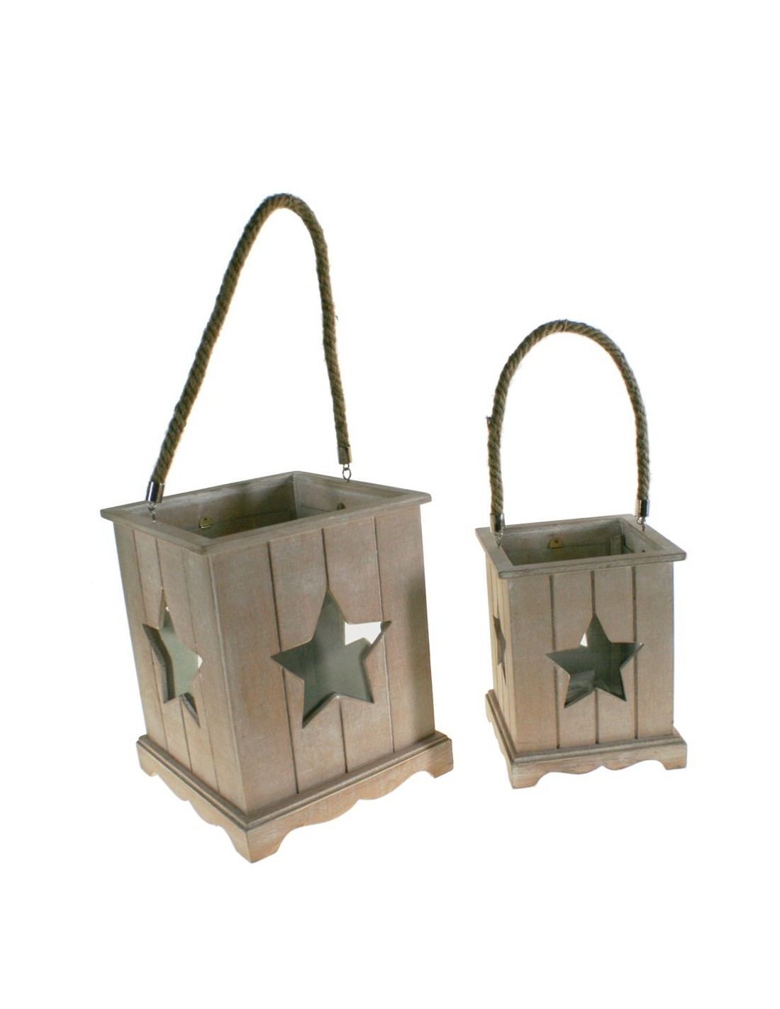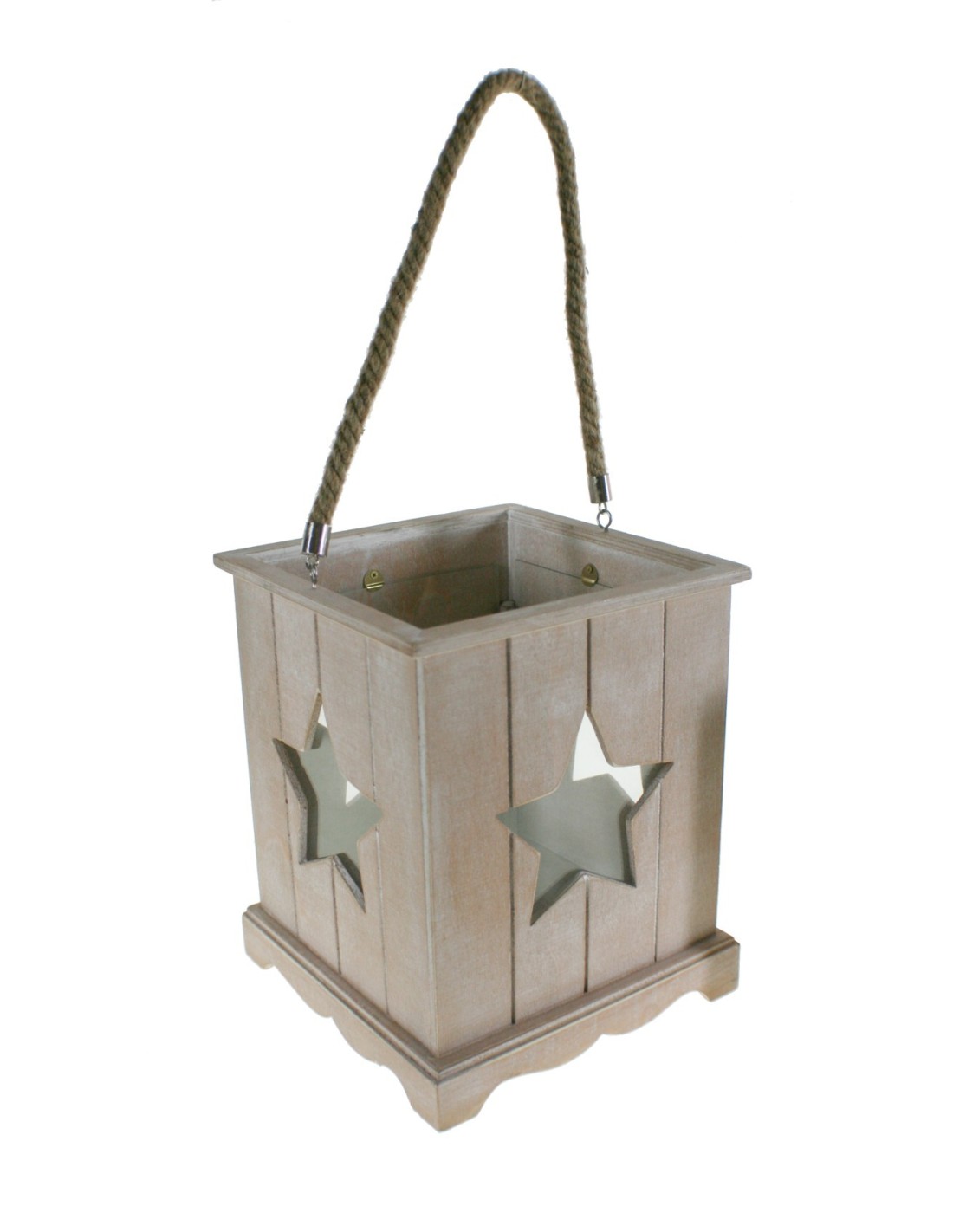 Cette lanterne en bois de style Shabby Chic est idéale pour la décoration intérieure et extérieure. Grâce à ses motifs, une étoile, la lanterne lumineuse sort en donnant une touche romantique au jardin ou à la pièce où ils se trouvent.