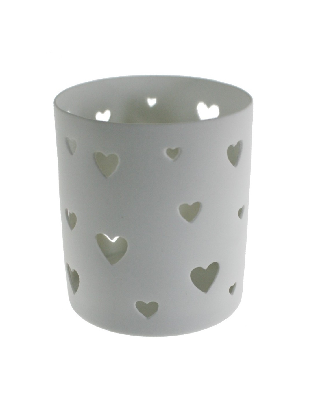 Bougeoir en céramique blanche avec coeurs à éclairer avec la décoration de la maison bougie. Mesures.10xØ8.5 cm.