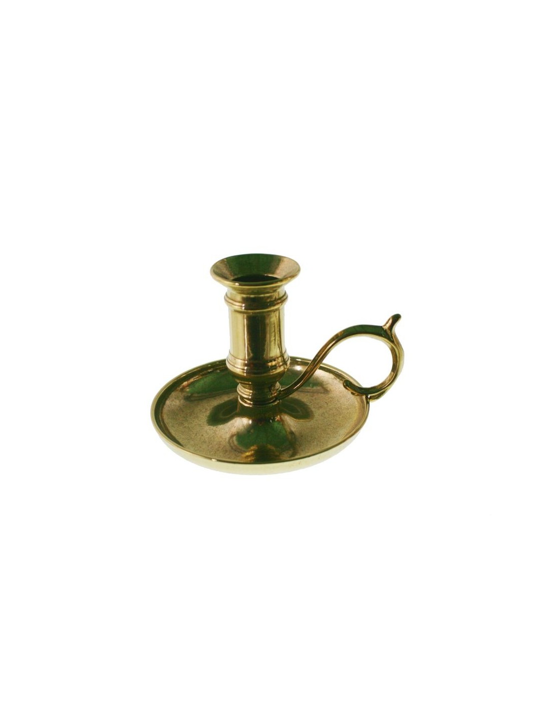 Petit bougeoir en métal doré avec anse pour bougie longue. Un bougeoir original pour les grandes occasions. Idéal pour donner une touche décorative à n'importe quelle pièce de votre maison.