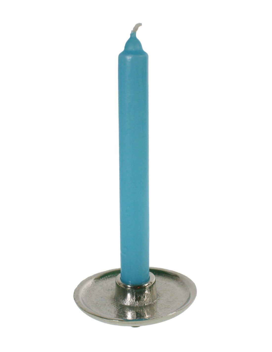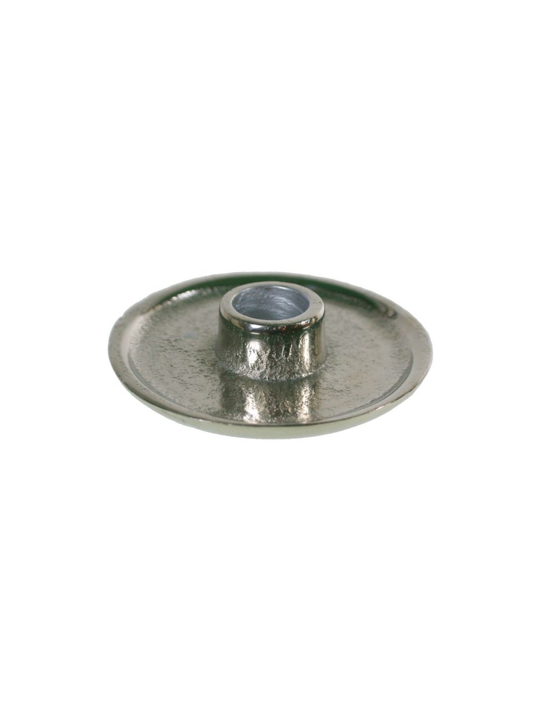 Petit bougeoir rond en aluminium pour bougie longue Ø2 cm. décor à la maison de style vintage. Les mesures. 2,5xØ9,5 cm.