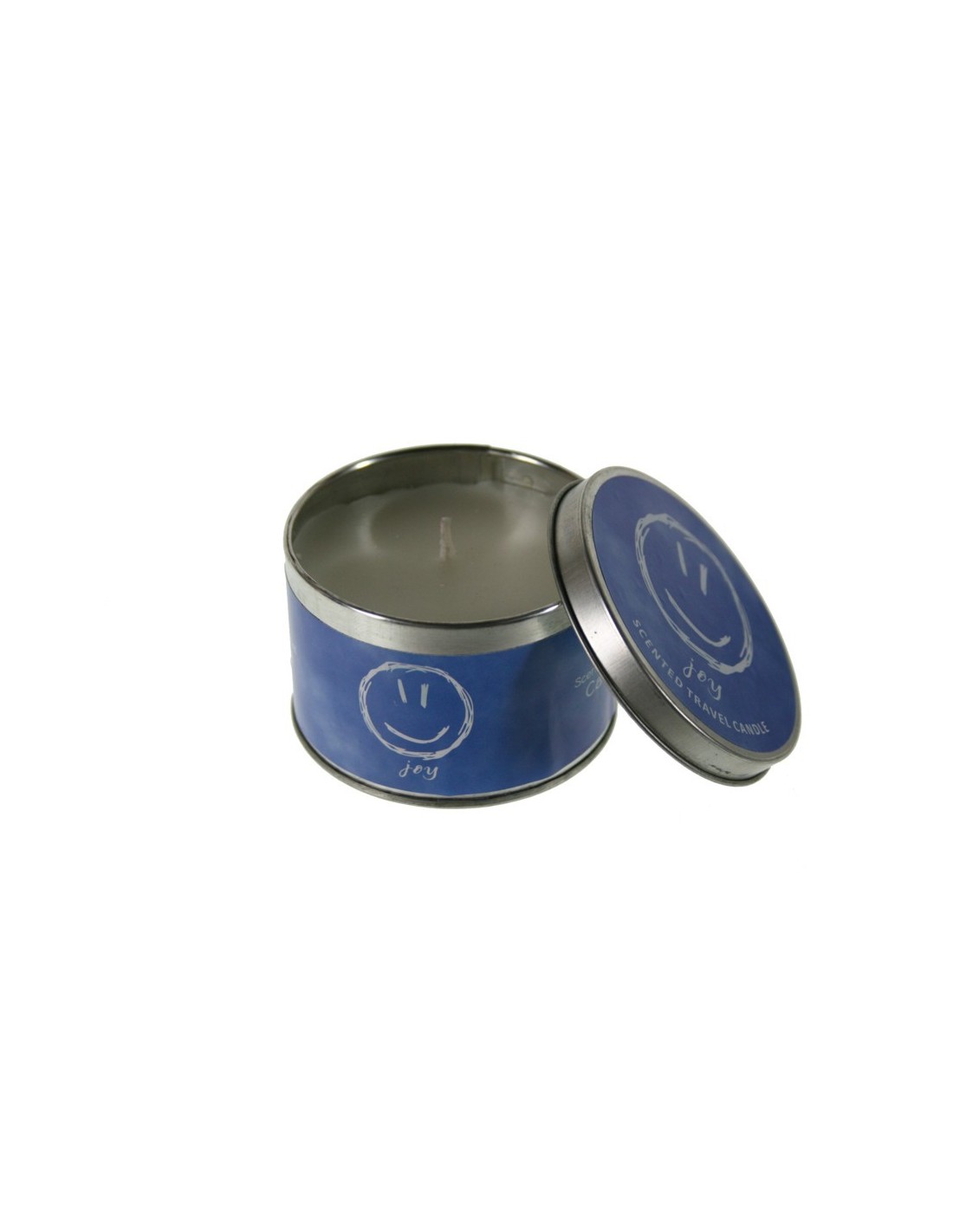 Bougie aromatique parfum de joie dans un récipient en étain. Mesures: 5xØ7 cm.