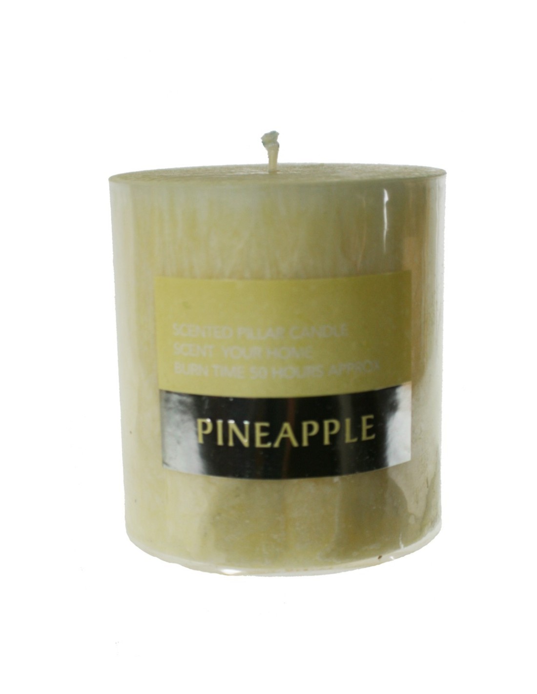 Bougie parfumée au parfum d'ananas. Les bougies ananas sont un parfum exotique et tropical parfait pour rafraîchir et éclairer votre maison et créer une atmosphère parfaite et décorer avec des bougies.