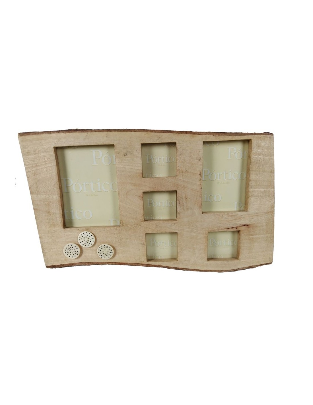 Habillez vos souvenirs les plus précieux avec le charme naturel de ce cadre mural pour six photos. Fabriqué à partir de planches de bois naturel massif, son design unique inspiré de la forme et de la texture organiques ajoutera une touche de style vintage à n'importe quel espace de votre maison. Mettez en valeur vos moments privilégiés en famille, entre amis ou en vacances avec cet élégant cadre photo.