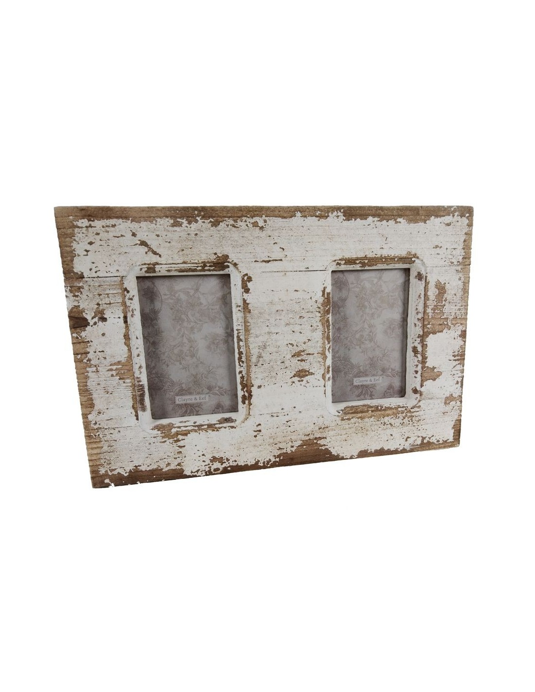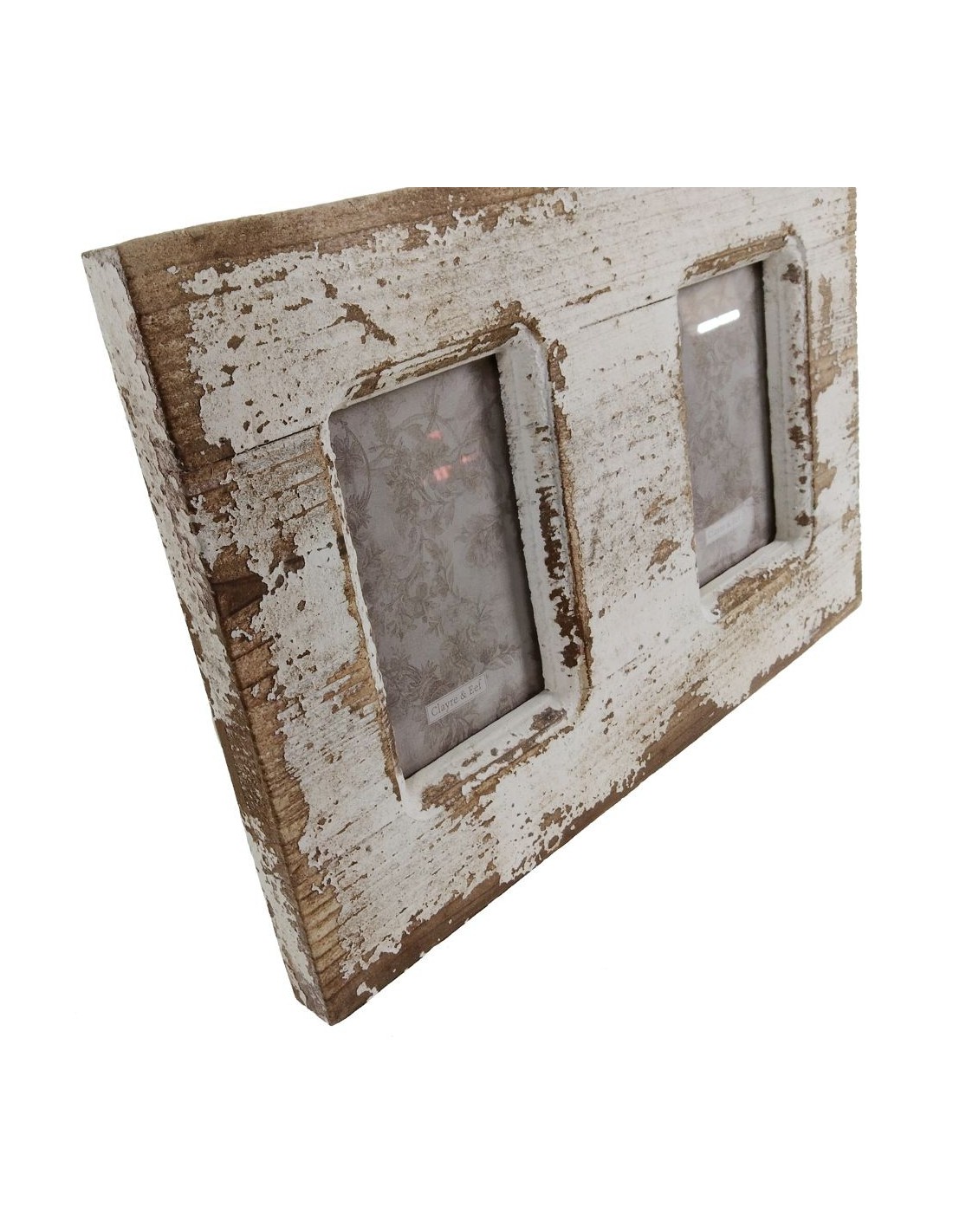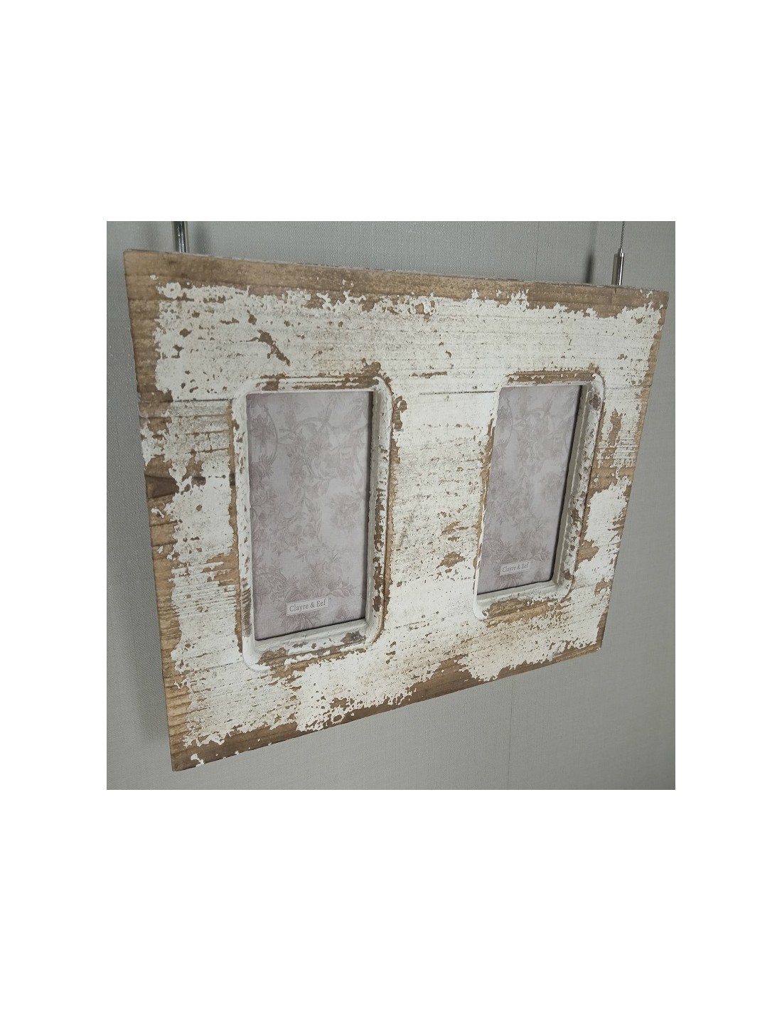 Cadre photo pour deux photos à accrocher au mur en bois décapé blanc cassé style vintage.Dimensions: 26x40x3 cm.