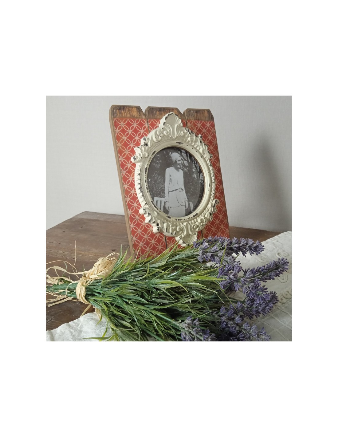 Charme rustique : porte-photo vintage en bois orange pour des moments spéciaux.