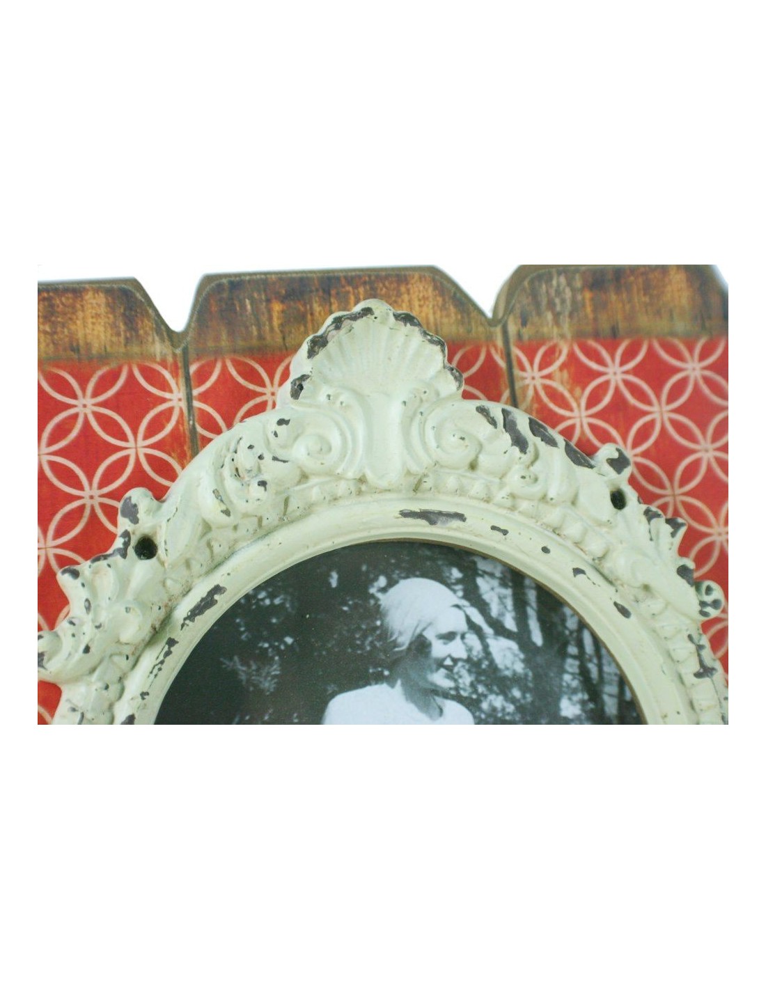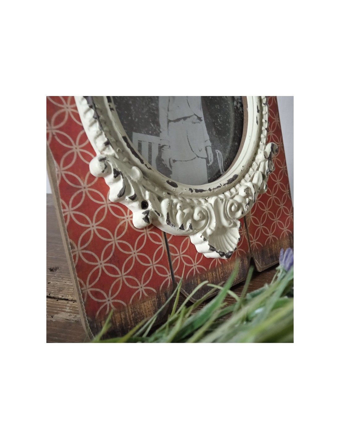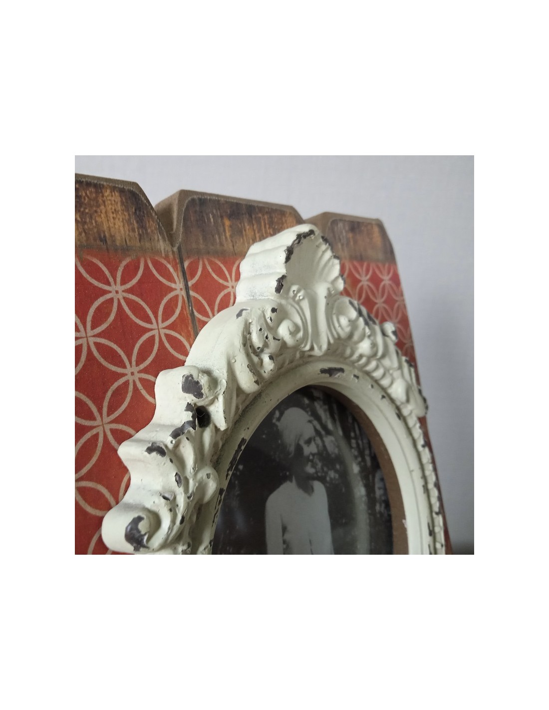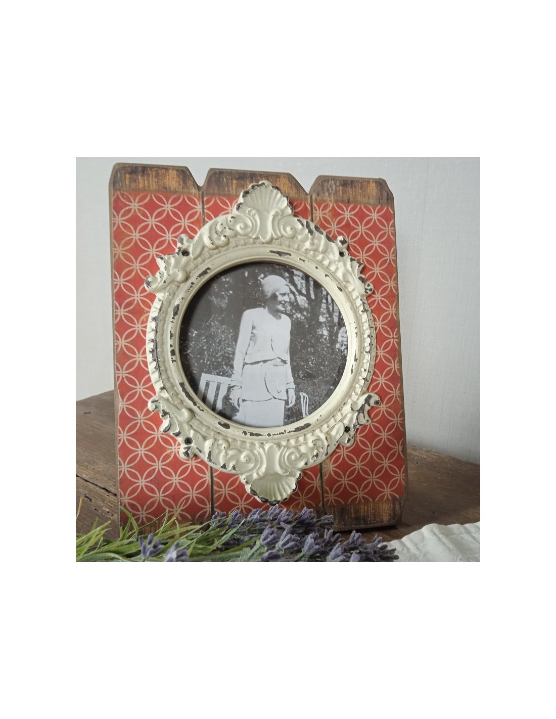 Cadre Photo en Bois Orange et Décoration Centrale en Céramique de Style Vintage. Dimensions : 24x19 cm.