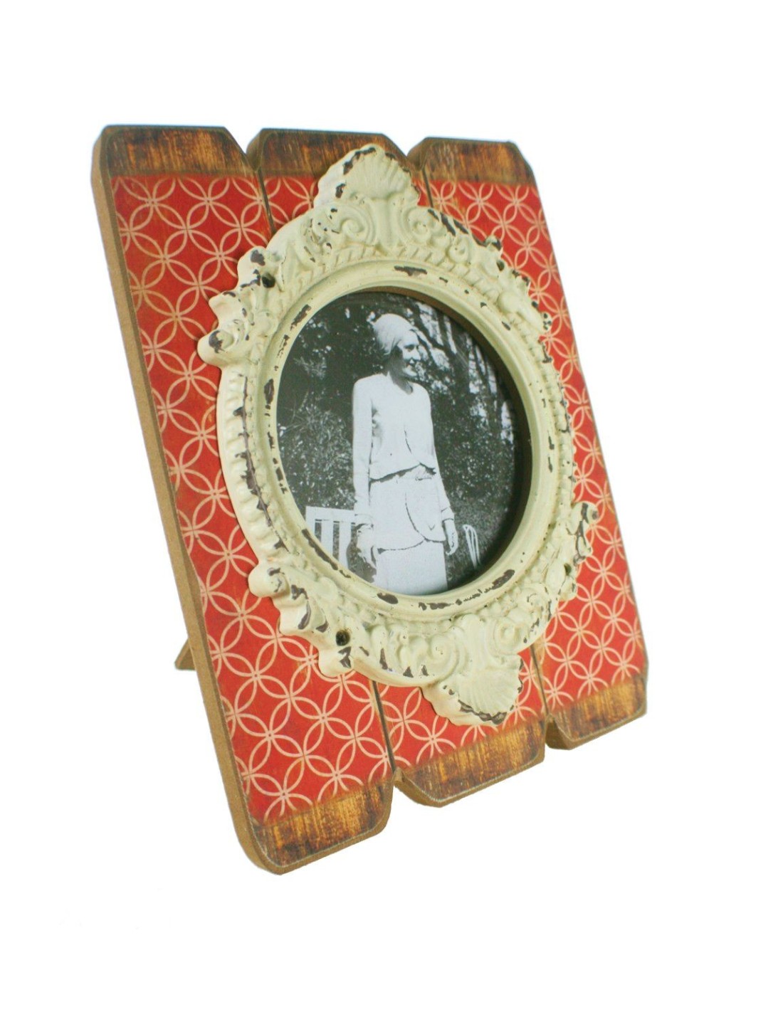 Embellissez vos souvenirs avec ce porte photo cadre en bois orange, style vintage rustique. Conçu pour les photos 12x12 cm, il présente un charmant décor central en céramique en relief avec une finition vieillie. Ce cadre photo encadre non seulement vos moments spéciaux, mais ajoute également une sensation de chaleur et de charme à n'importe quelle pièce de votre maison et donne une touche spéciale à vos moments spéciaux.