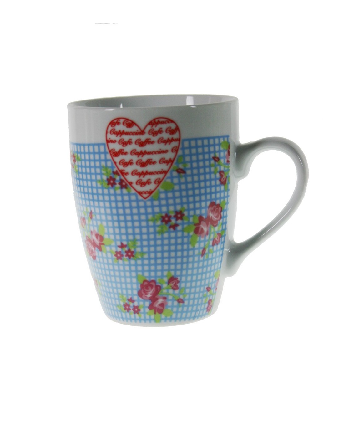 Mug mug tasse à café en porcelaine bleue avec motif floral de style vintage pour le petit déjeuner. Dimensions : 10xØ8 cm.
