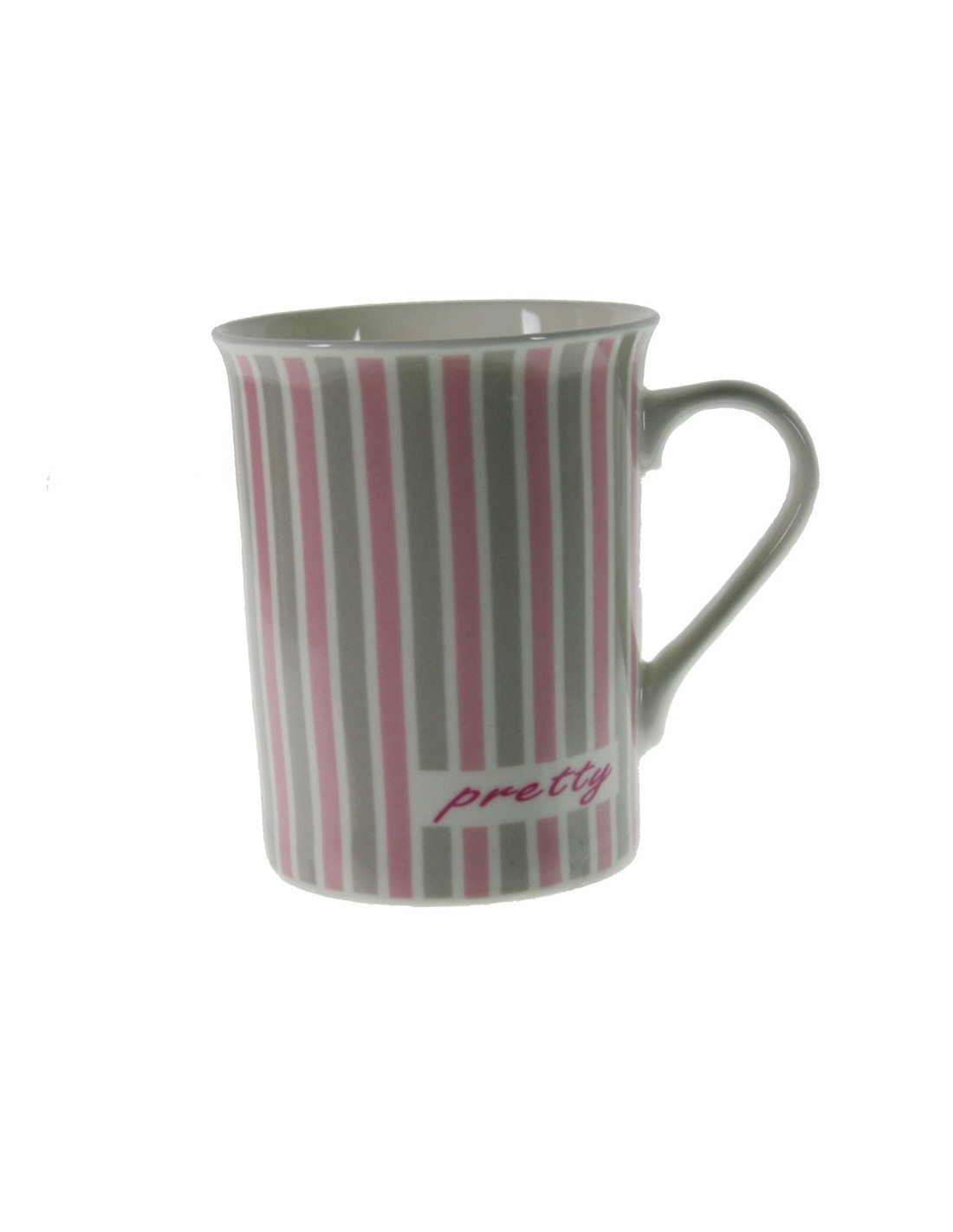 Tasse à café en porcelaine rose avec motif rayé de style vintage romantique pour le petit-déjeuner. Dimensions: 10xØ8 cm.