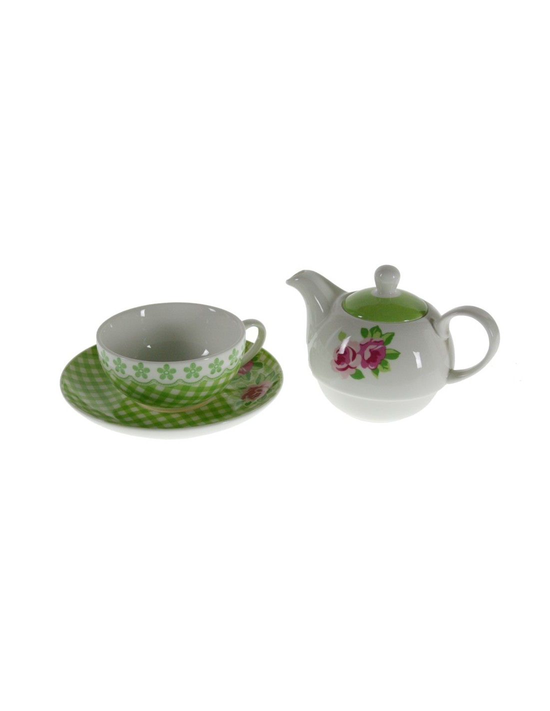 Ensemble de thés individuels pour une personne en céramique verte avec de style vintage. Dimensions : 17x17x15cm.