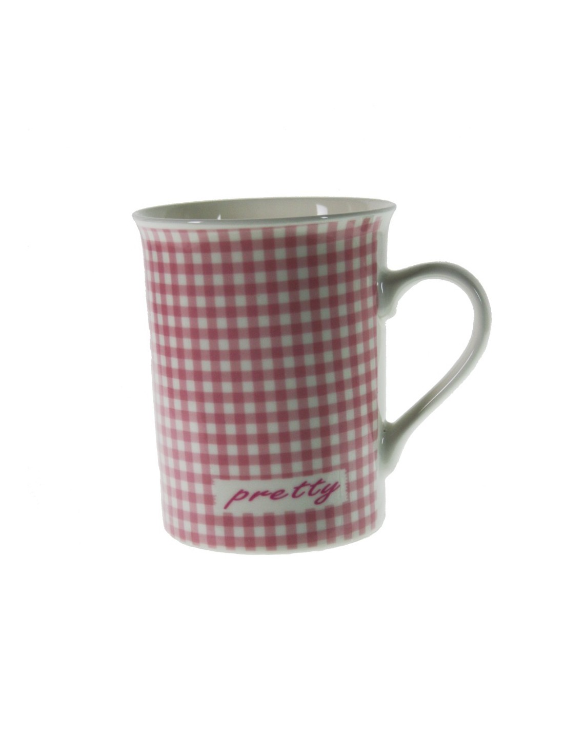 Tasse à café en porcelaine rose avec motif à carreaux, style vintage romantique pour le petit-déjeuner. Dimensions: 10xØ8 cm.