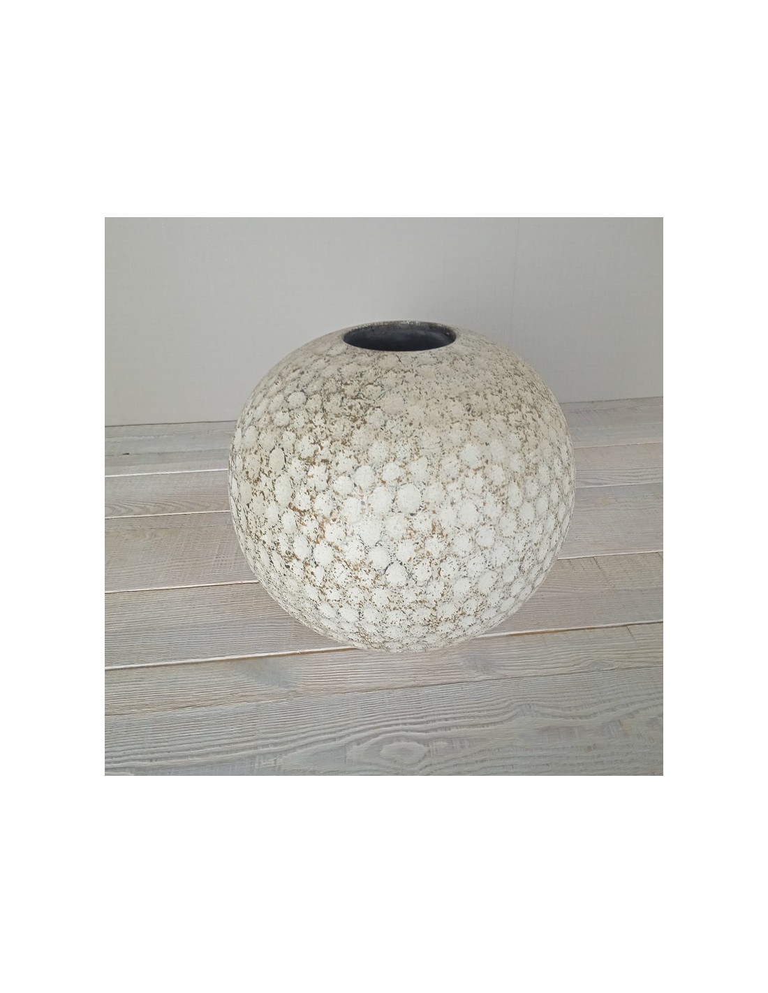 Pièce maîtresse ou vase en bois de forme ronde dans une décoration de maison gris étincelant. Mesures 23xØ27 cm.