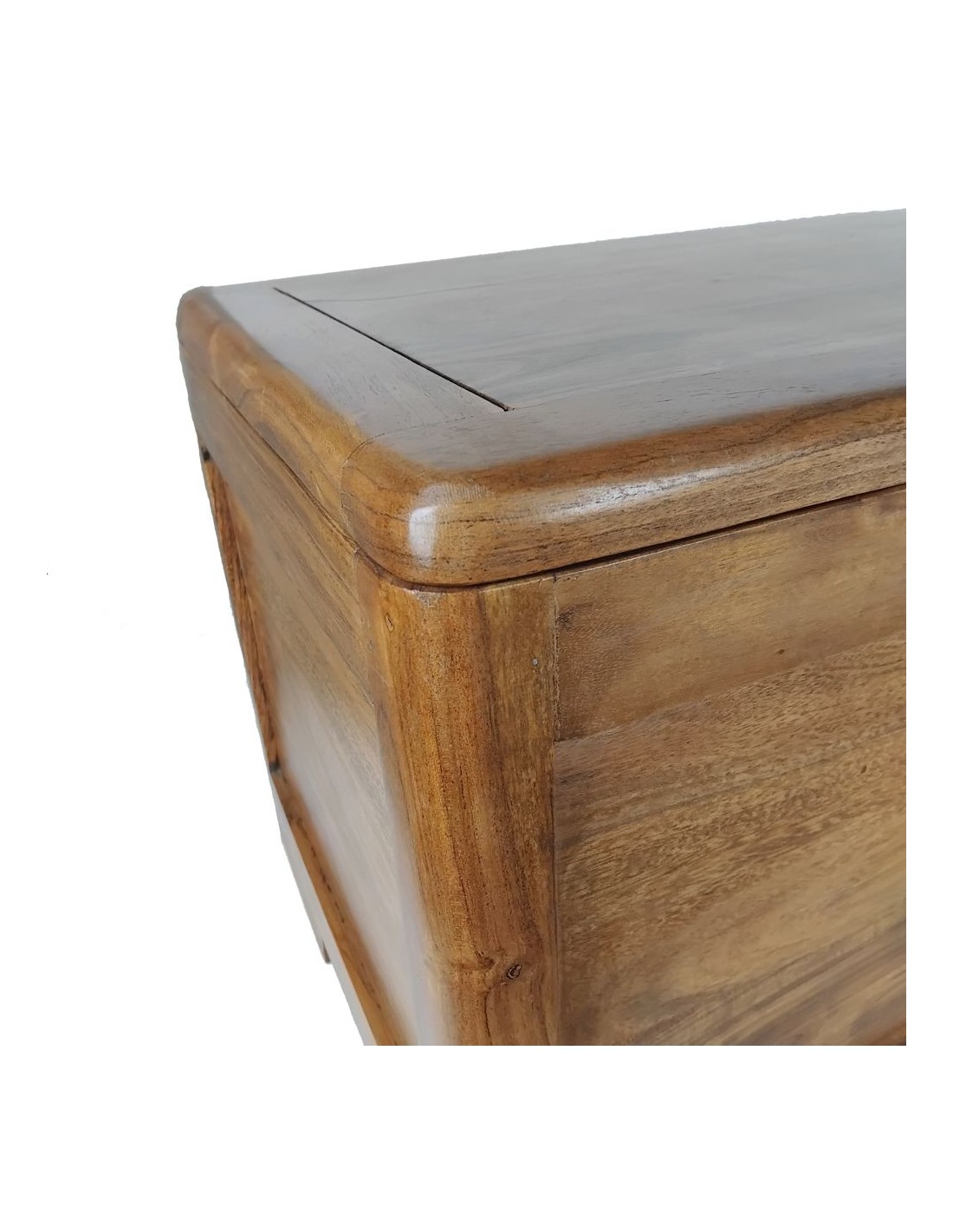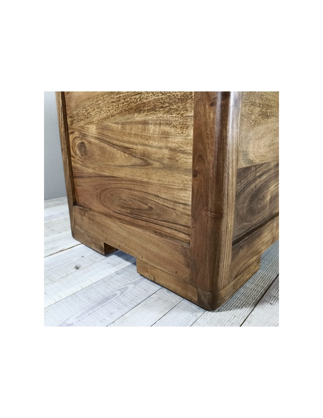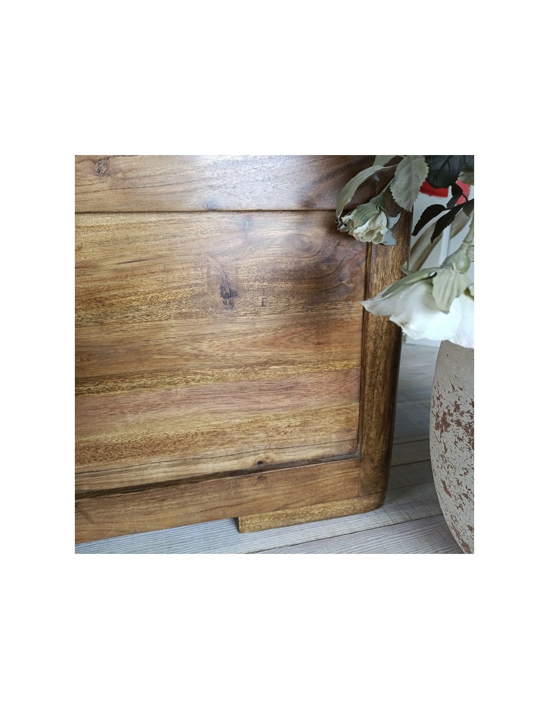 Ce coffre est fabriqué en bois d'acacia massif, qui met en valeur son veinage naturel et sa chaleur. Son design simple et élégant en fait un élément décoratif à part entière, idéal pour tous les recoins de la maison.