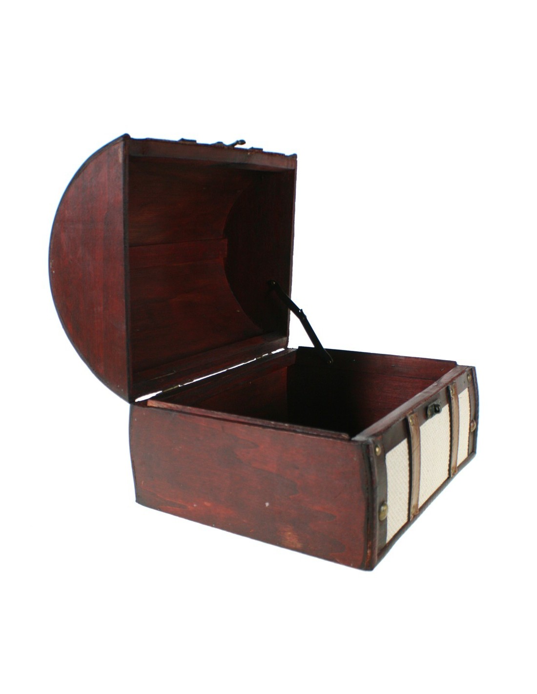 Petit coffre en bois avec revêtement en tissu, boîte à bijoux au charme vintage. Dimensions : 16 x 22 x 20 cm.