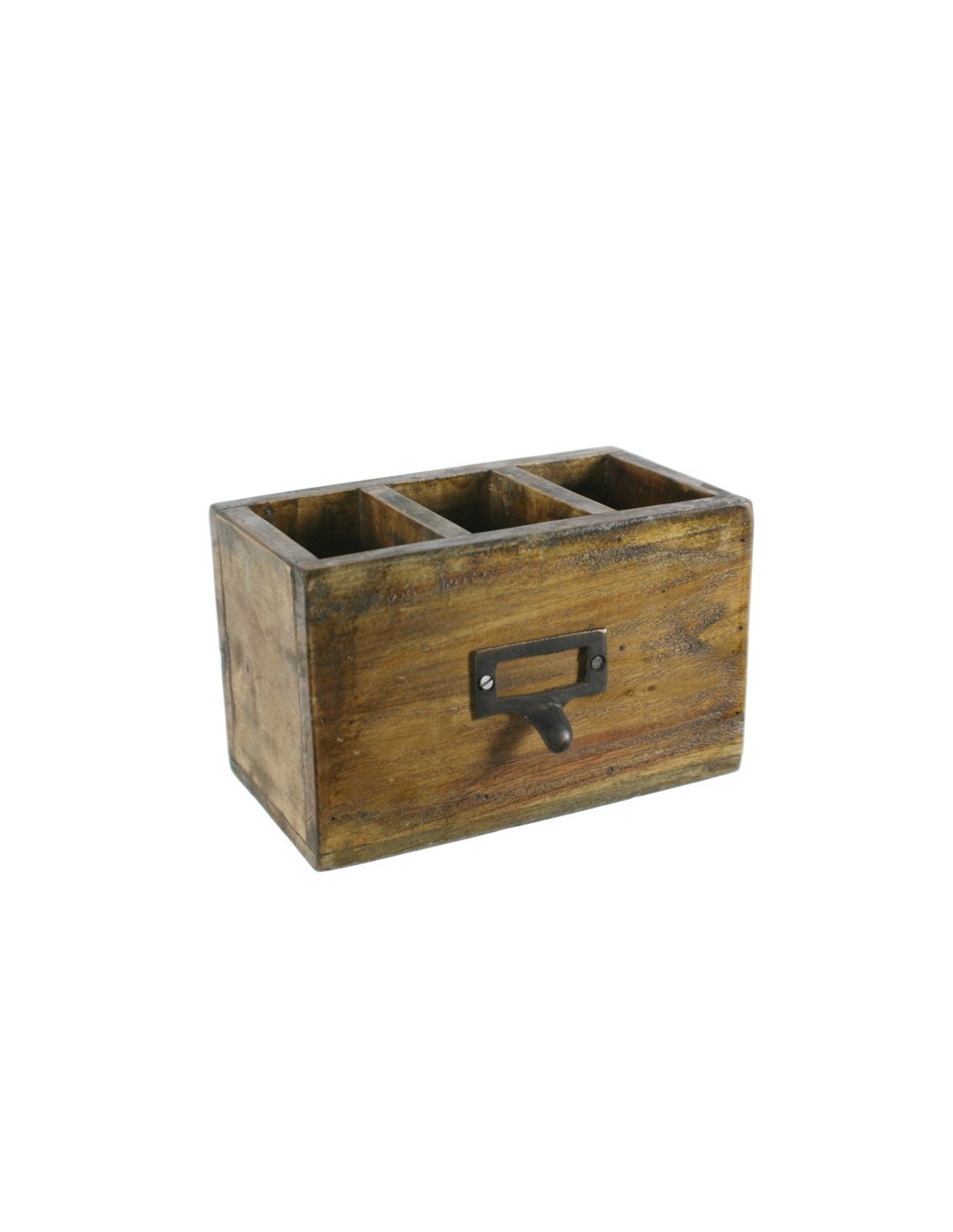 Boîte pour papeterie en bois d'acacia massif et de style très rustique. Vous pouvez également l'utiliser comme couverts pour les ustensiles de cuisine.