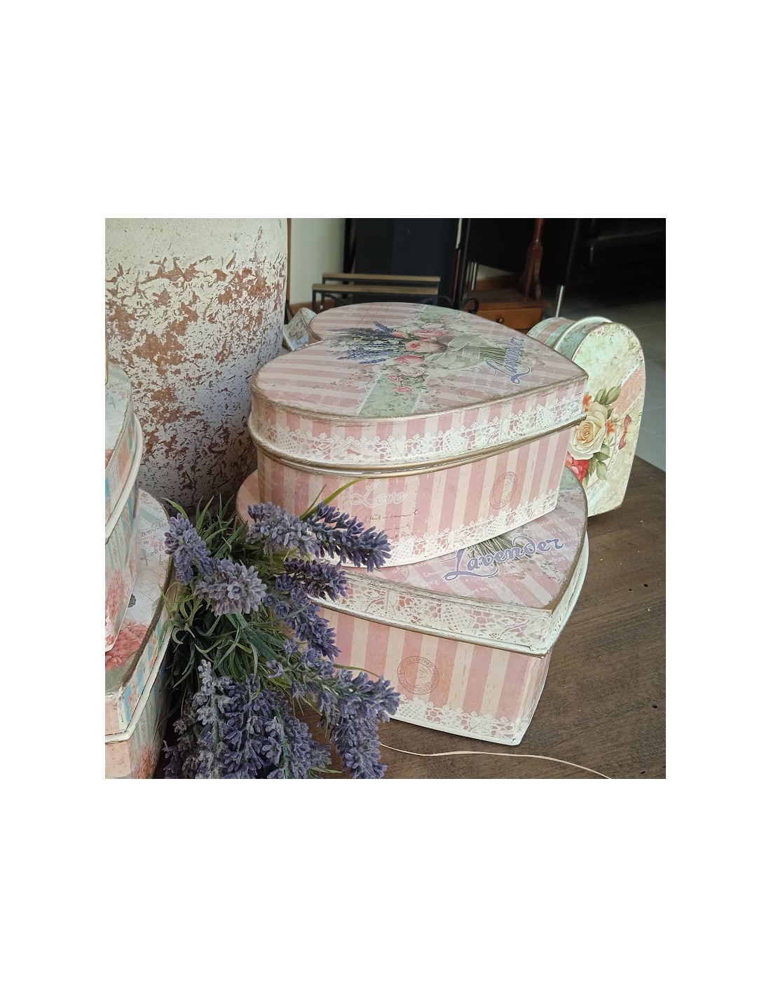 Grande boîte en métal en forme de cœur décorée dans un style très romantique, idéale pour décorer votre maison et en même temps lui donner une utilité de rangement. Si vous êtes une personne romantique et affectueuse, avec cette boîte, vous serez surpris de faire un cadeau spécial.