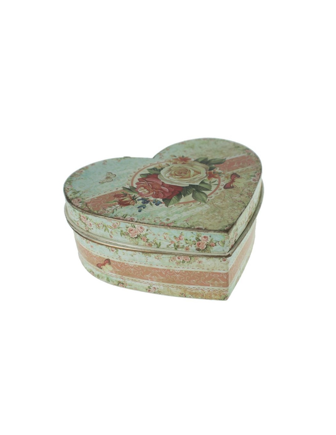 Petite boîte en métal en forme de cœur décorée dans un style très romantique, idéale pour décorer votre maison et en même temps lui donner une utilité de rangement. Si vous êtes une personne romantique et affectueuse, avec cette boîte, vous serez surpris de faire un cadeau spécial.