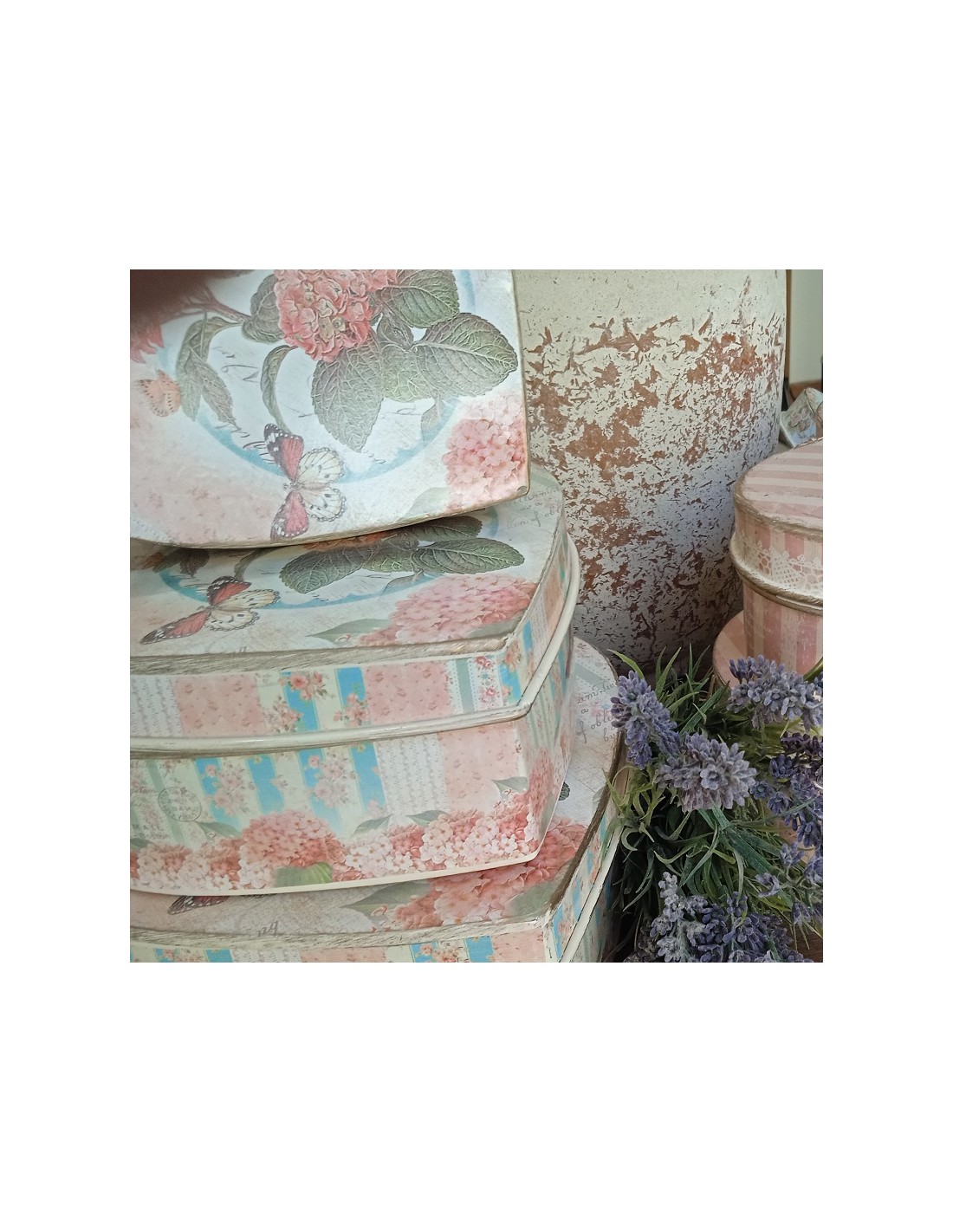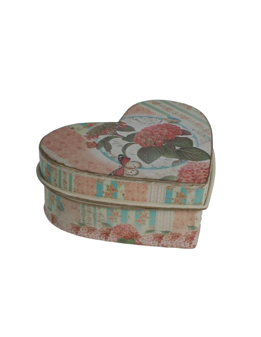 Boîte en forme de cœur de style vintage décorée de fleurs dans des tons pastel. C'est une boîte pour faire un beau cadeau dans un moment unique et inoubliable et pour mettre dedans ce que vous aimez le plus. C'est aussi une boîte très décorative pour votre maison.