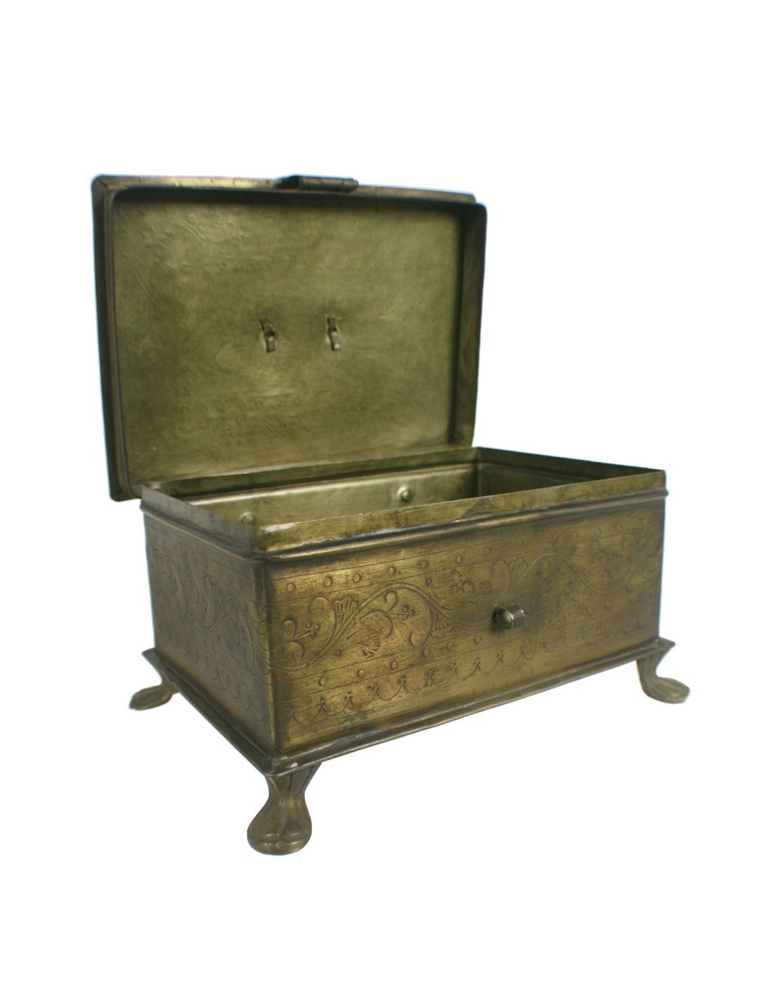 Boîte à bijoux en métal avec gravures et fermeture couleur laiton vieilli. Ce coffret est dans un style rétro vintage, vous pourrez en profiter dans n'importe quelle pièce de votre maison, dans l'entrée, la chambre... vous leur donnerez une touche de grande personnalité. Et un cadeau différent.