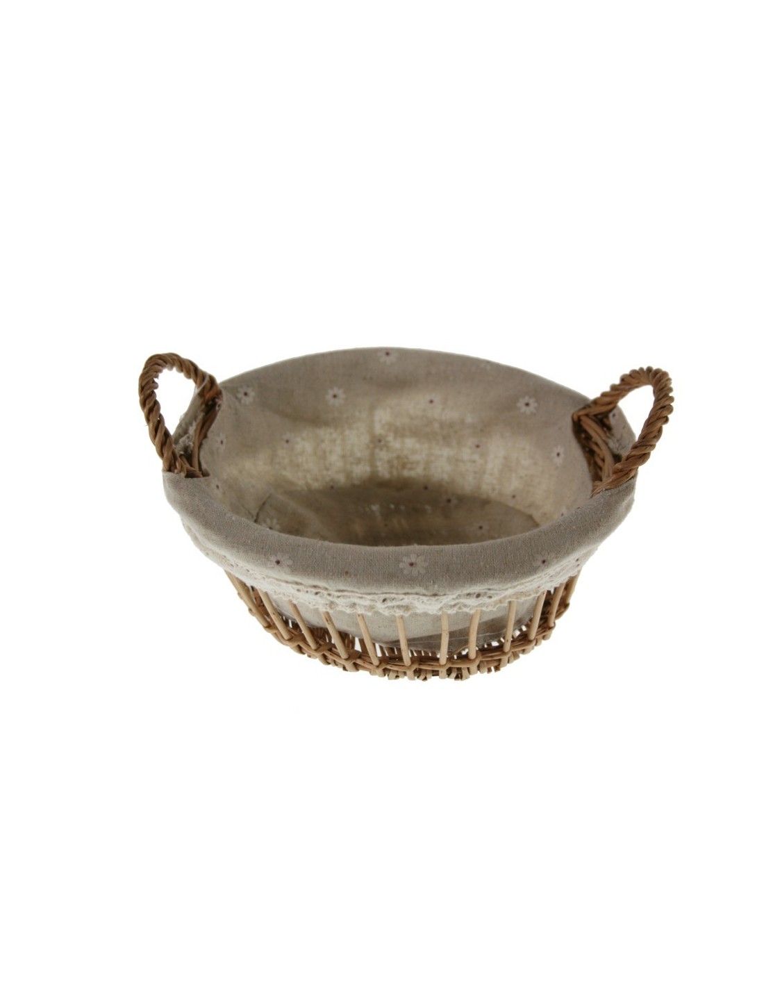 Corbeille à pain ronde en osier pour pain recouverte de tissu style rustique ustensile de table.Dimensions:13xØ23 cm.