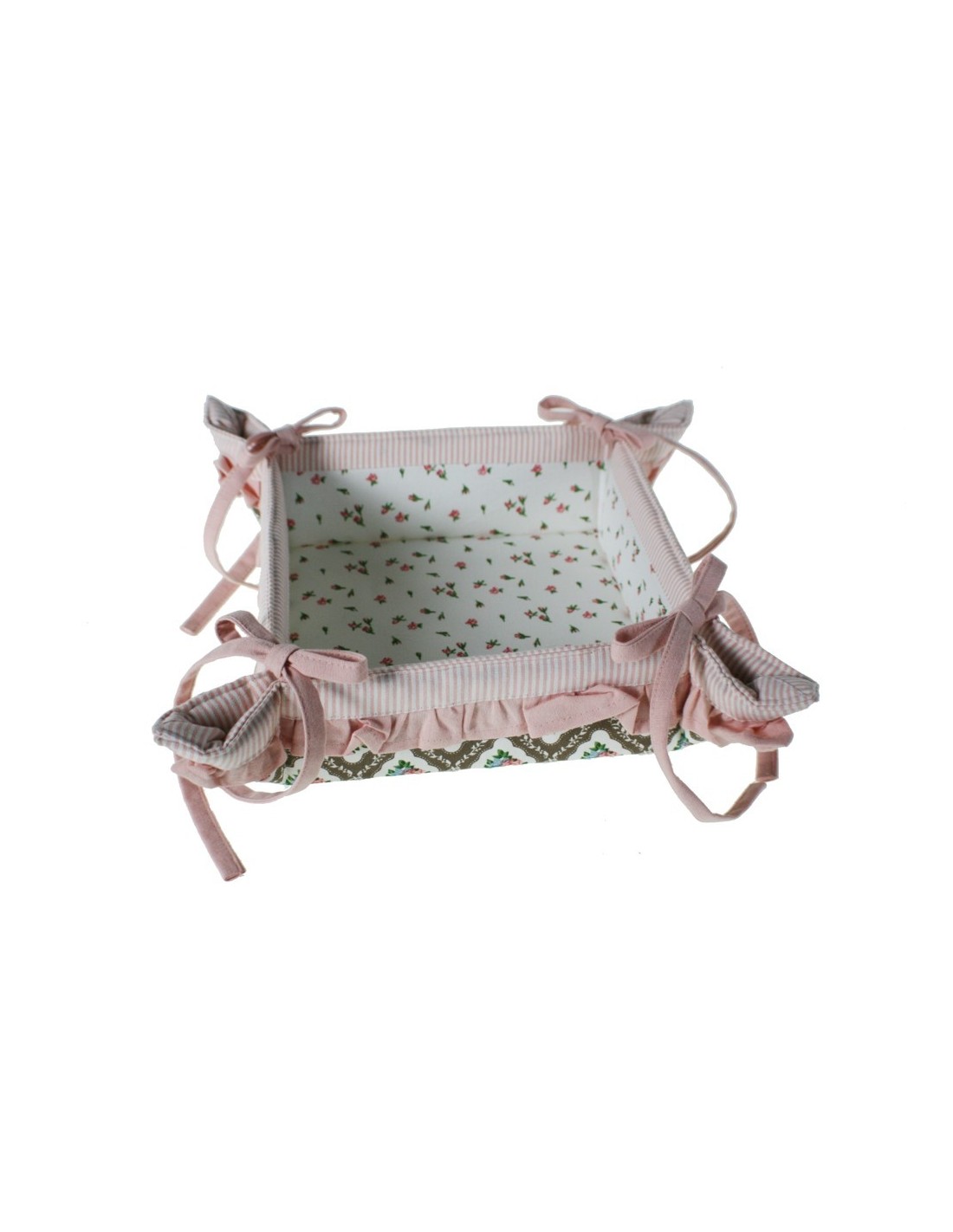 Corbeille à pain en tissu pratique avec nœuds et volants aux finitions soignées. Un cadeau très original et pratique.