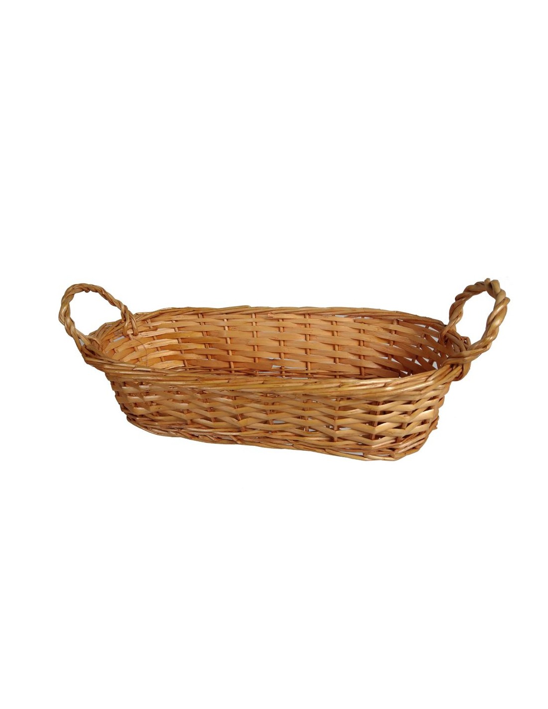 Panier à pain allongé en osier avec poignée couleur miel pour pain, fruits, noix ou panier décoratif. Dimensions : 13x38x16 cm.