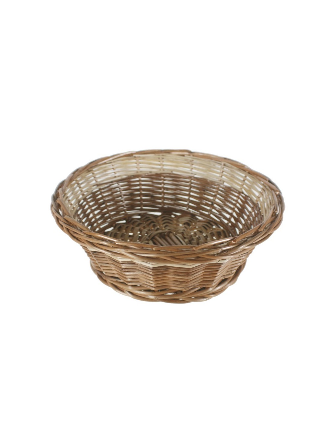 Corbeille à pain ou corbeille ronde pour pain en osier bicolore style rustique ustensile de table. Dimensions : 10xØ26 cm.