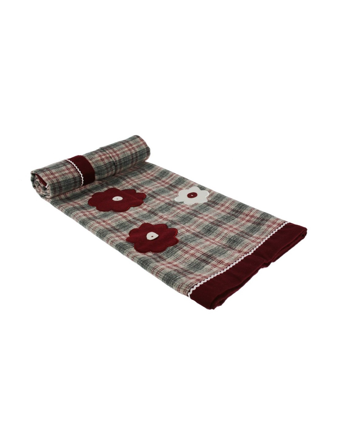 Couverture réversible dans les tons marron et gris avec broderie florale. Idéal pour protéger le canapé ou décorer votre lit, alliant style et chaleur.