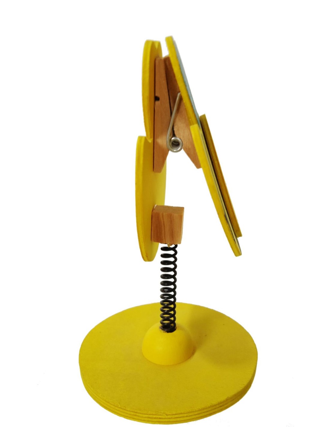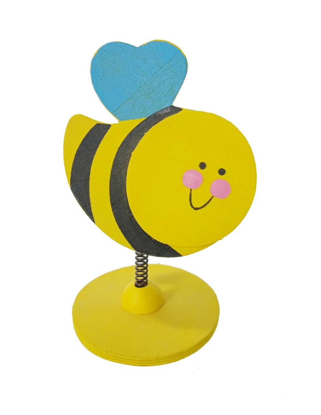 Clip en bois jaune en forme de guêpe, socle de bureau, clip avec support vertical pour cartes. Dimensions : 12x7x7cm.