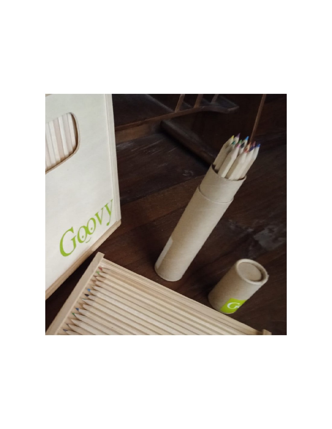 Tube en carton rigide contenant 12 crayons de couleur uniques, parfait pour une variété de projets artistiques. Compact et pratique à emporter partout.